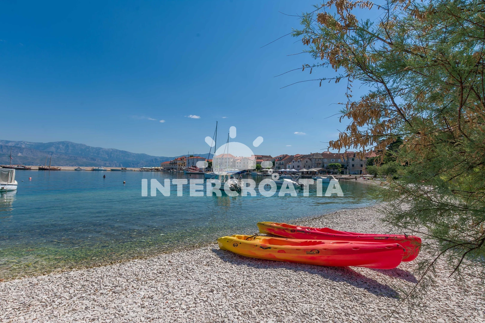 Vzdálenosti: Moře 65 m, pláž 700 m (kamenné a betonové desky), centrum 50 m, muzeum 62 m, půjčovna kol 69 m, lékárna 77 m, restaurace 84 m, pošta 99 m, bar 180 m, ambulance 240 m, půjčovna motorových člunů 240 m, tenisové kurty 270 m, supermarket 350 m, banka 10 km, čerpací stanice 10,3 km, trajekt (Supetar) 10,6 km, potápění 12,3 km, letiště (Split) 52 km,