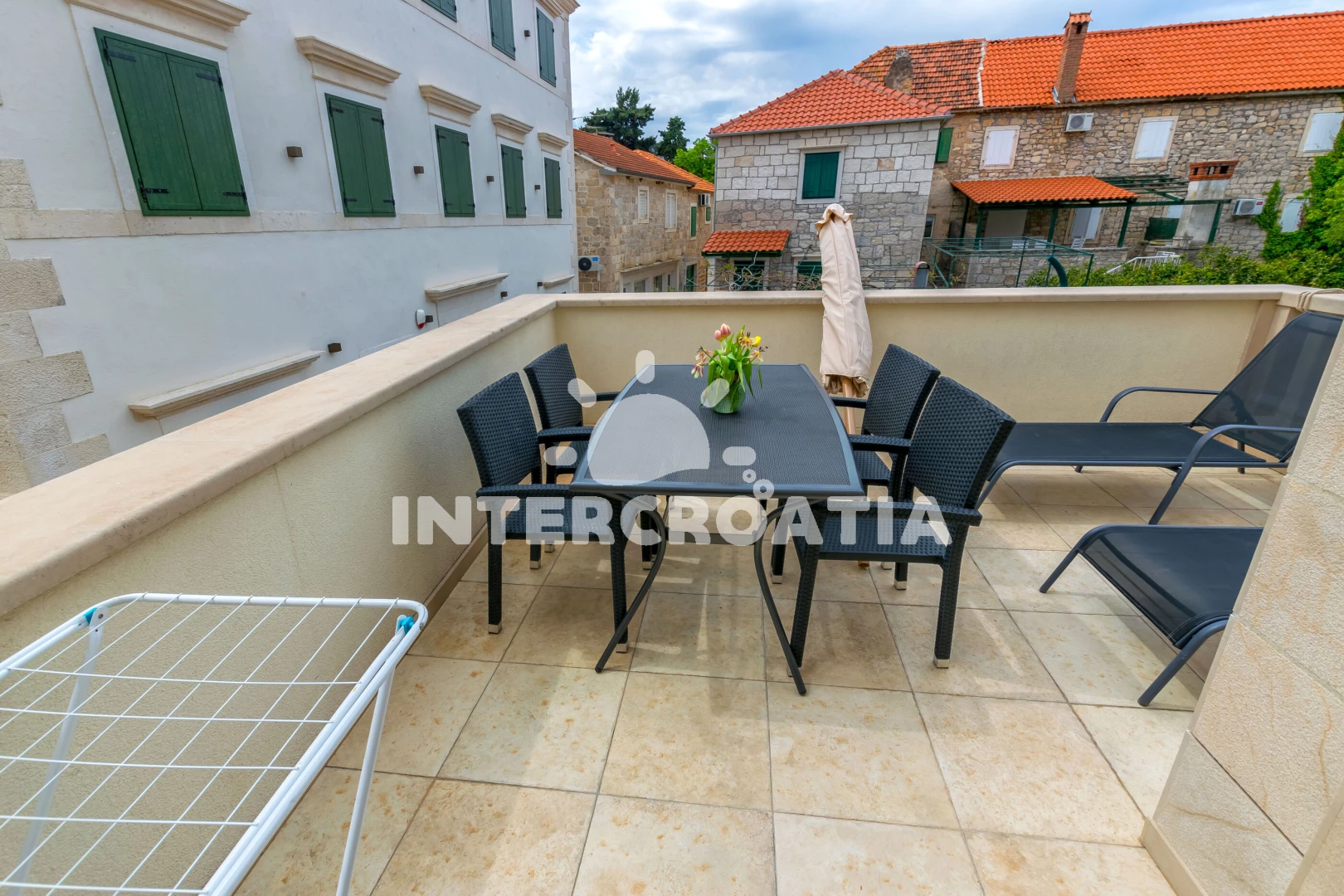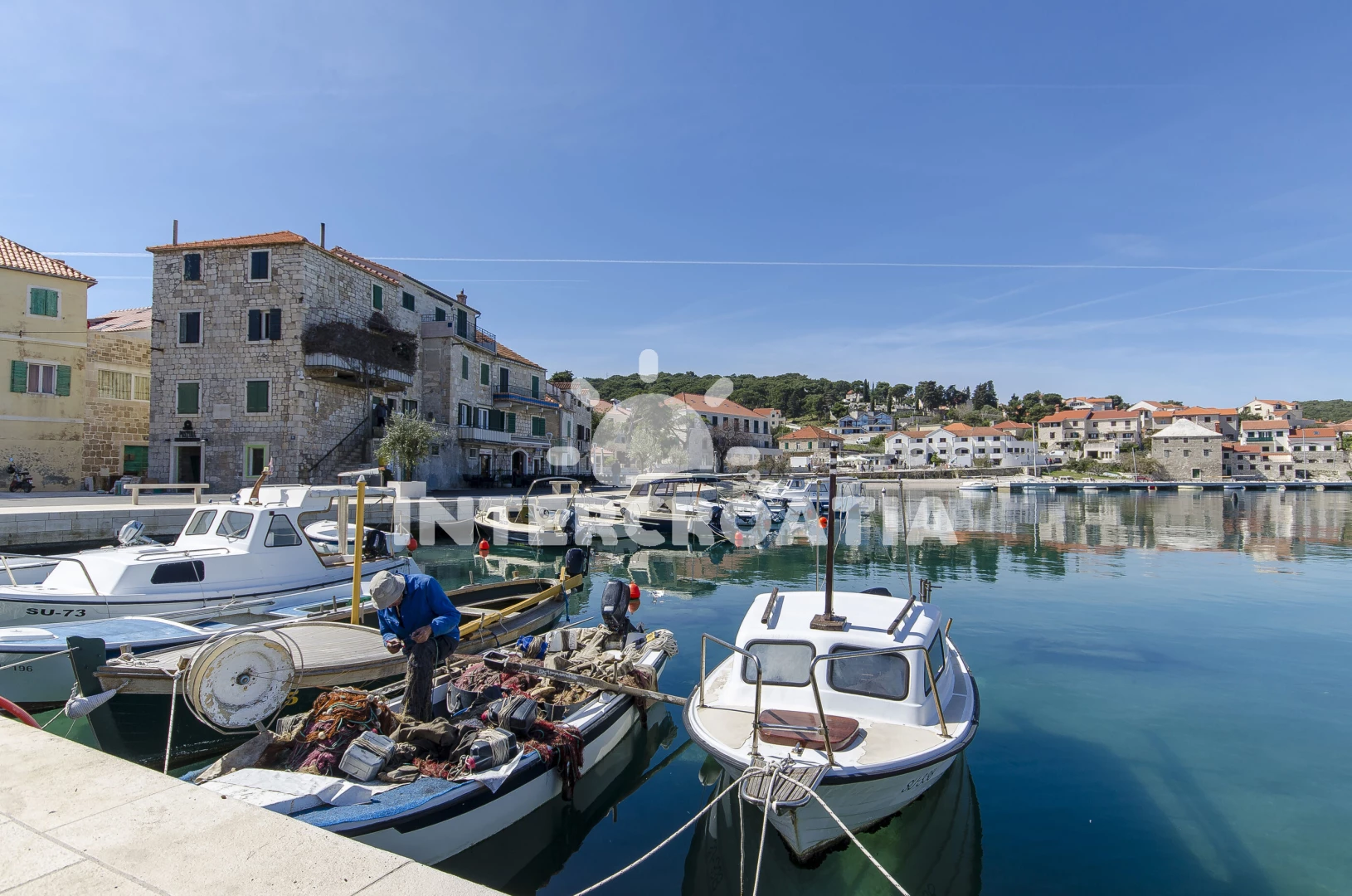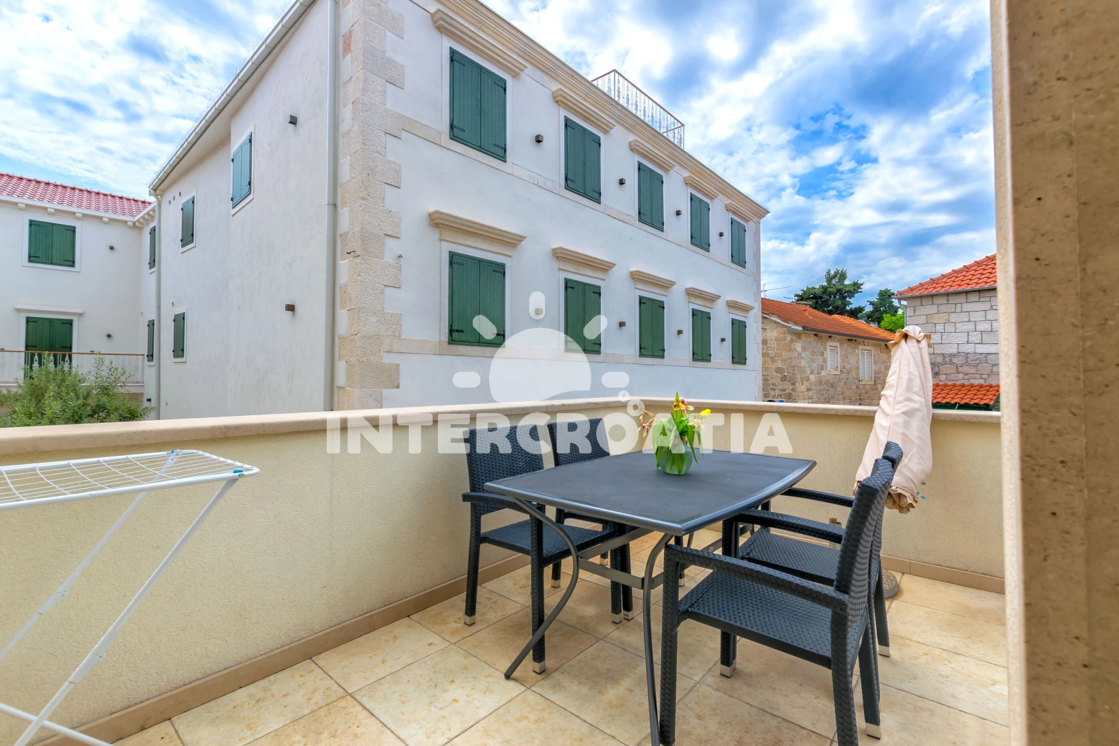 Vzdálenosti: Moře 65 m, pláž 700 m (kamenné a betonové desky), centrum 50 m, muzeum 62 m, půjčovna kol 69 m, lékárna 77 m, restaurace 84 m, pošta 99 m, bar 180 m, ambulance 240 m, půjčovna motorových člunů 240 m, tenisové kurty 270 m, supermarket 350 m, banka 10 km, čerpací stanice 10,3 km, trajekt (Supetar) 10,6 km, potápění 12,3 km, letiště (Split) 52 km,