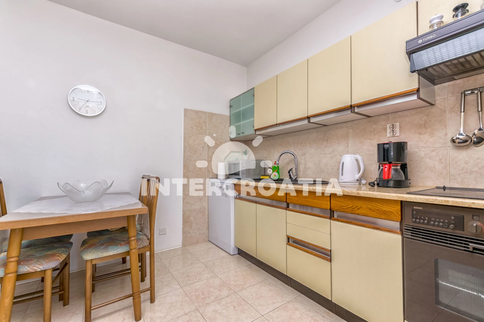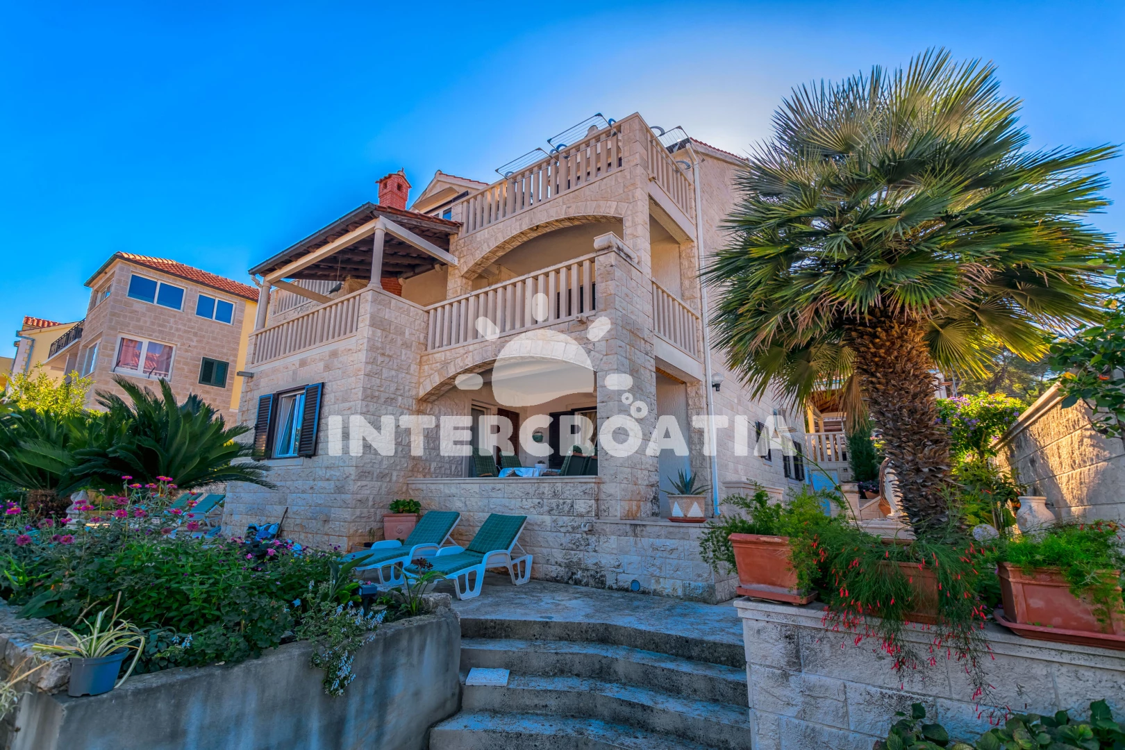 Vzdálenosti: Moře 180 m, pláž 700 m (oblázková a betonové desky), supermarket 300 m, veřejná doprava 500 m, směnárna 700 m, pošta 700 m, bar 700 m, restaurace 700 m, centrum 750 m, lékárna 10 km, ambulance 10 km, čerpací stanice 10 km, banka 10 km, trajekt (Supetar) 11,0 km, letiště (Split) 52 km,