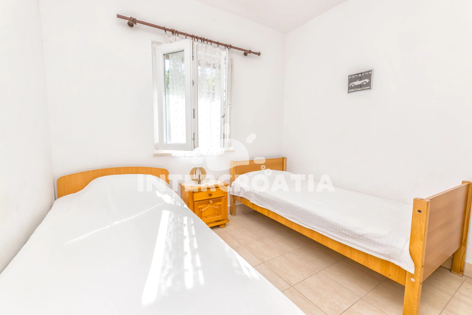 Apartmán se nachází 350 m od moře a pláže. Pláž je oblázková a betonové desky. U objektu je k dispozici společná zahrada s posezením a grilem. Parkování je před domem.