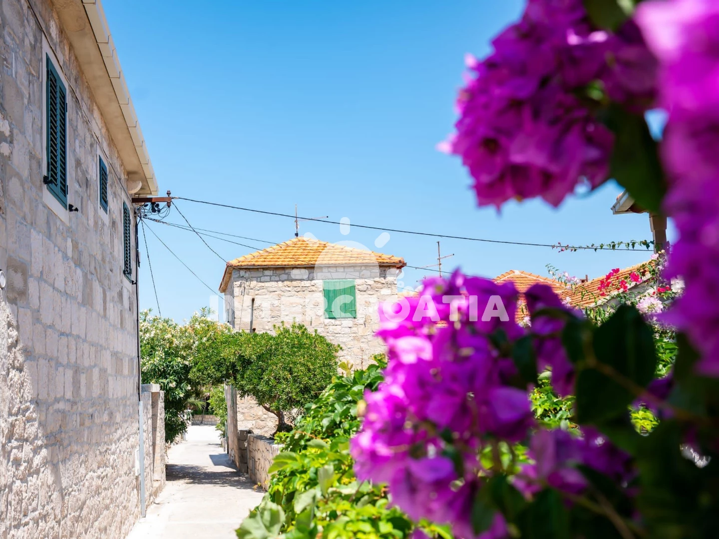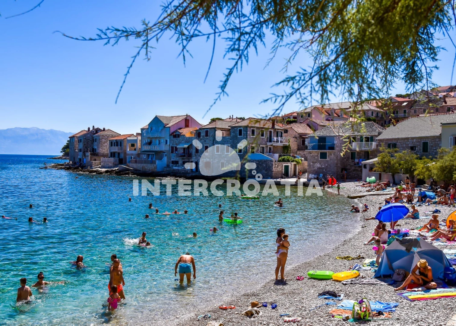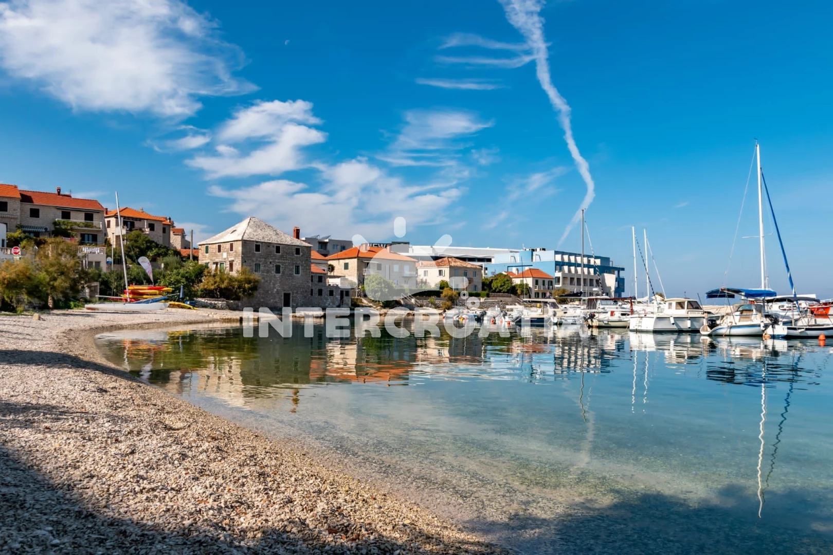 Vzdálenosti: Moře 30 m, pláž 70 m (oblázky), supermarket 40 m, centrum 50 m, bar 100 m, restaurace 100 m, lékárna 200 m, ambulance 200 m, směnárna 200 m, pošta 200 m, trajekt (Supetar) 7 km, čerpací stanice 7 km, tenisové kurty 7 km, banka 7 km, diskotéka 7 km, marina 30 km,