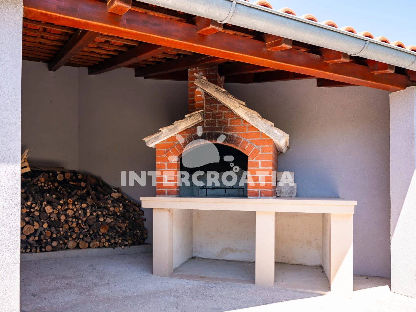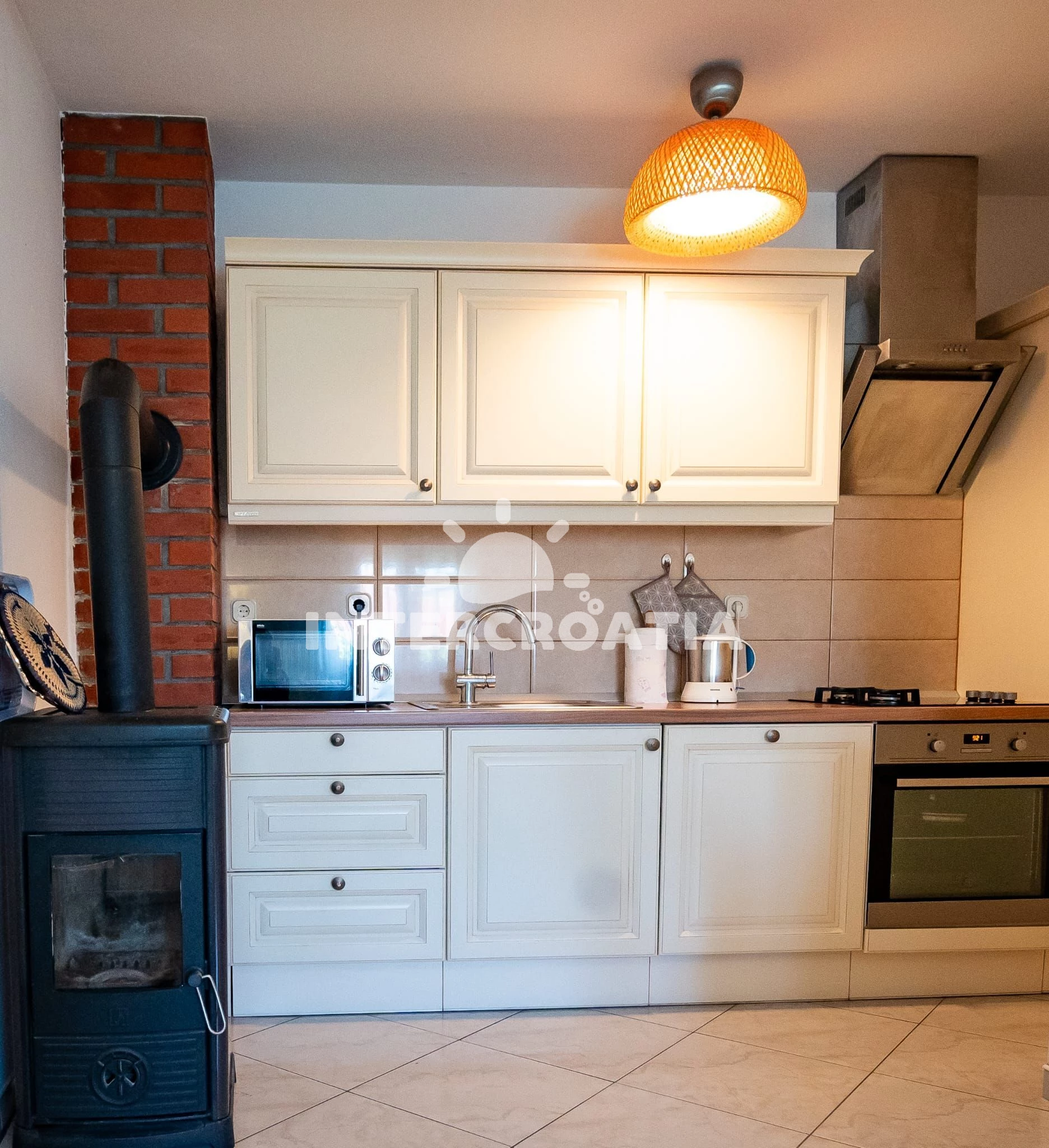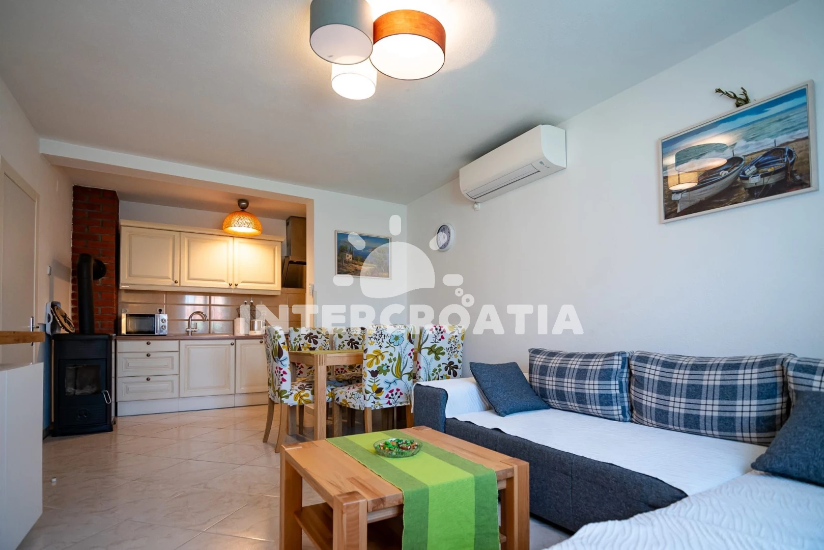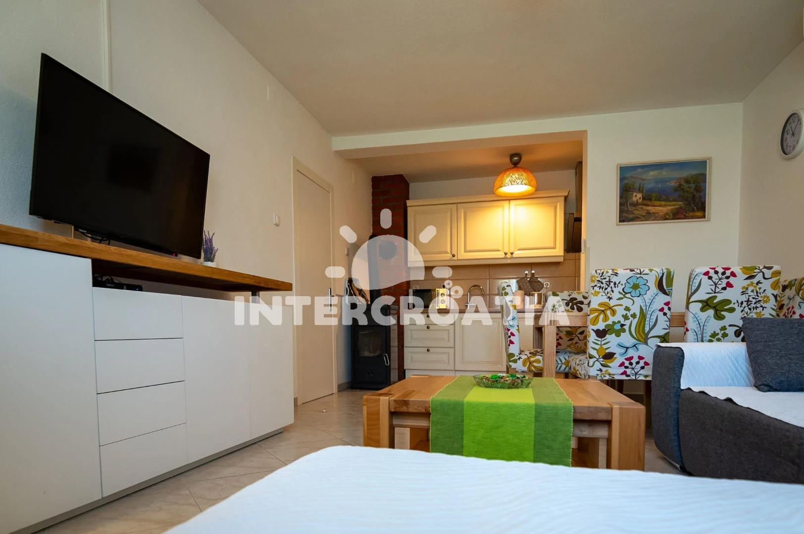 The apartment was exceptionally clean. The kitchen is equipped with a freezer, microwave, oven and enough cookware. We borrowed what we missed from the hostess. We really liked the fireplace and the terrace for 6 people. Very close to a nice and clean beach with a shower and calm water.
