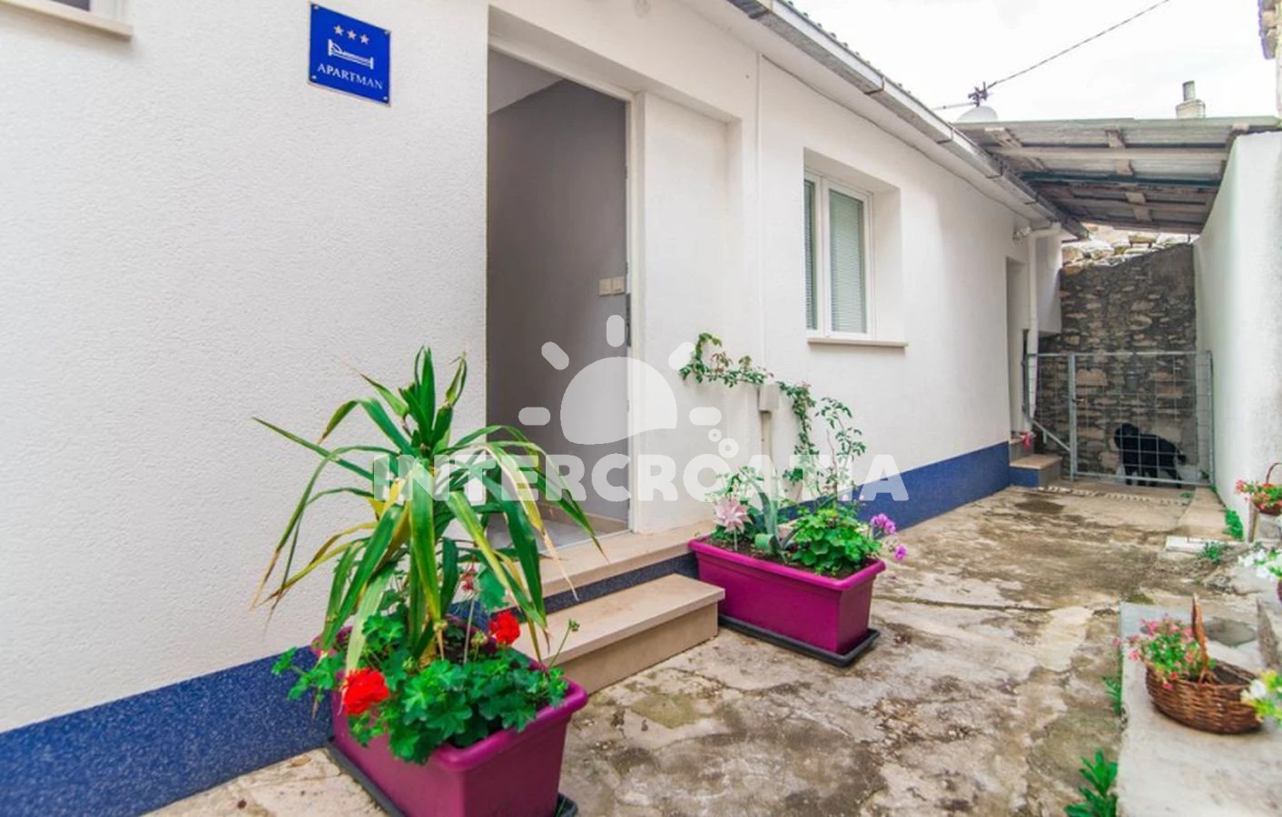 Apartmán se nachází 300 m od moře a pláže. Pláž je skalnatá, oblázková a betonové desky. U objektu je k dispozici společná zahrada s posezením a grilem. Parkování je před domem.