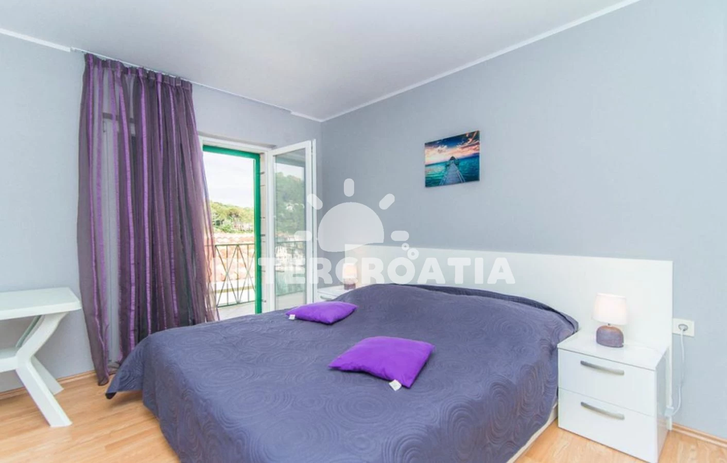 Apartmán (70 m2) s terasou, s balkonem. Nachází se ve 2. patře objektu. Apartmán má 2 ložnice a je vhodný pro až 6 osob. Kuchyňská linka je vybavena varnou deskou, troubou, kávovarem, toustovačem, myčkou na nádobí, mikrovlnnou troubou, rychlovarnou konvicí, nádobím, lednicí, mrazákem. V obývací místnosti je rozložitelná pohovka (extra lůžko pro 2 osoby). K dispozici televize se satelitním programem, žehlička. První ložnice s dvoulůžkem. Druhá ložnice s dvoulůžkem. Koupelna s vanou, umyvadlem, fénem a WC.