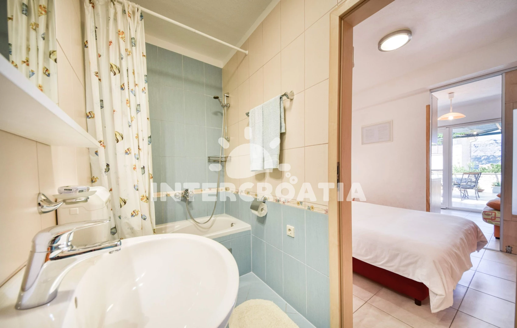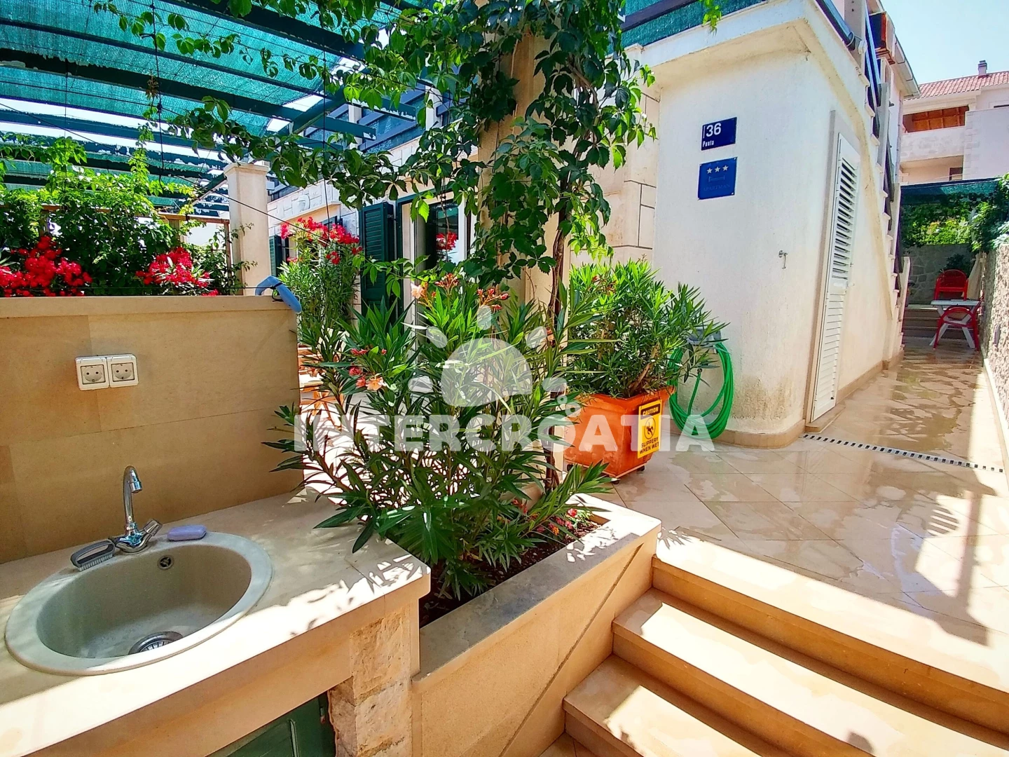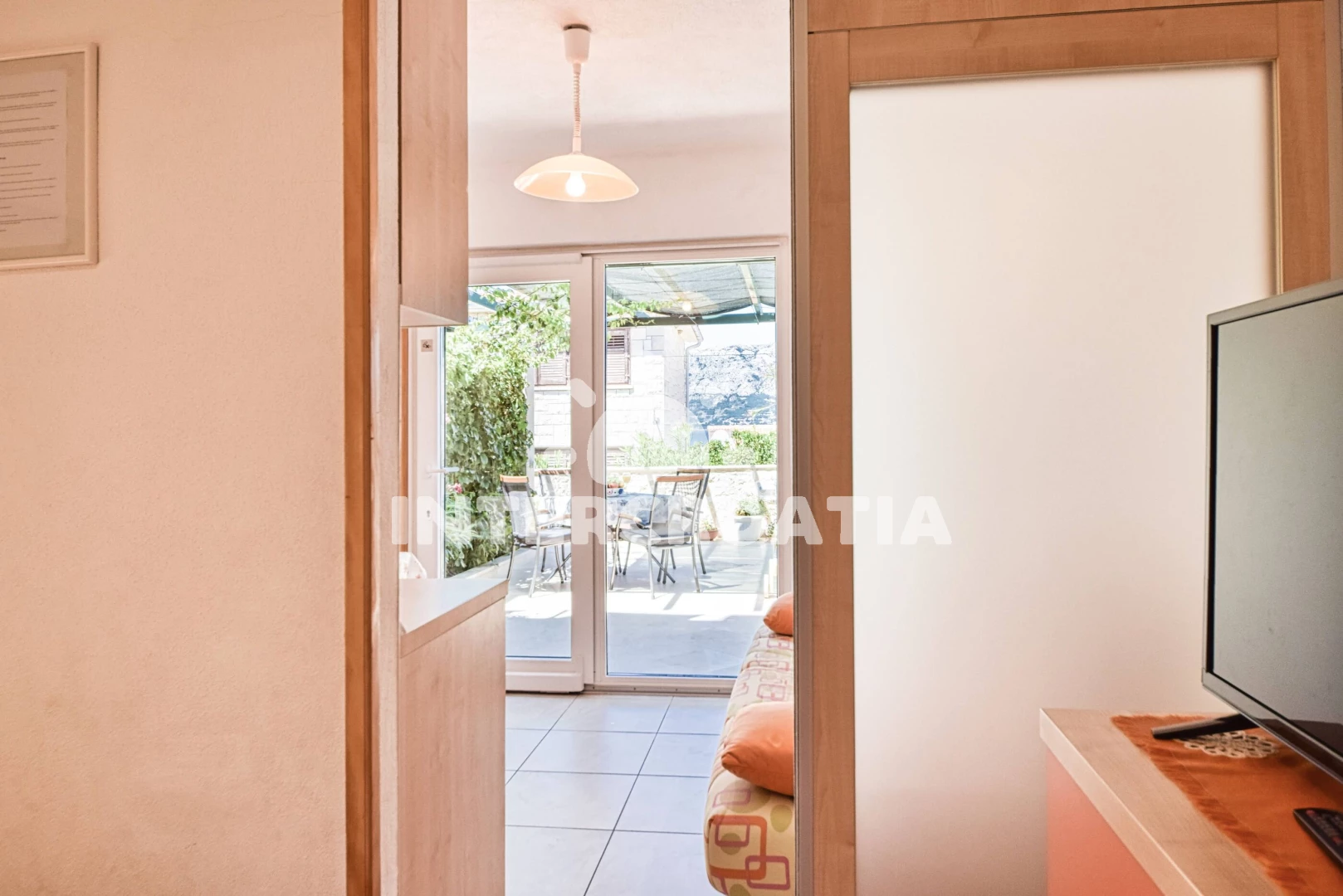 Vzdálenosti: Moře 80 m, pláž 100 m (skalnatá, oblázková a betonové desky), restaurace 300 m, centrum 300 m, supermarket 300 m, ambulance 7 km, trajekt 40 km, letiště 80 km,