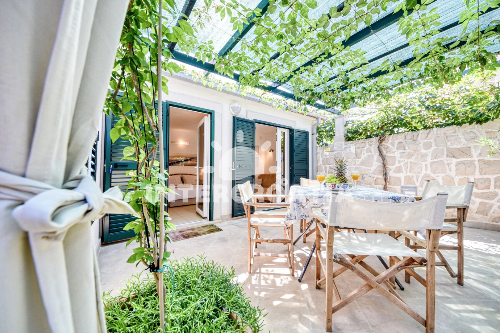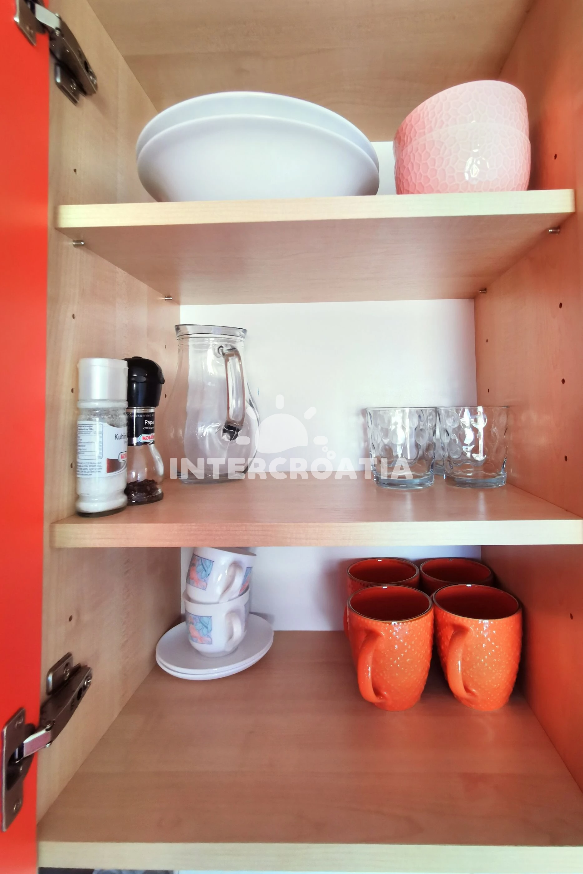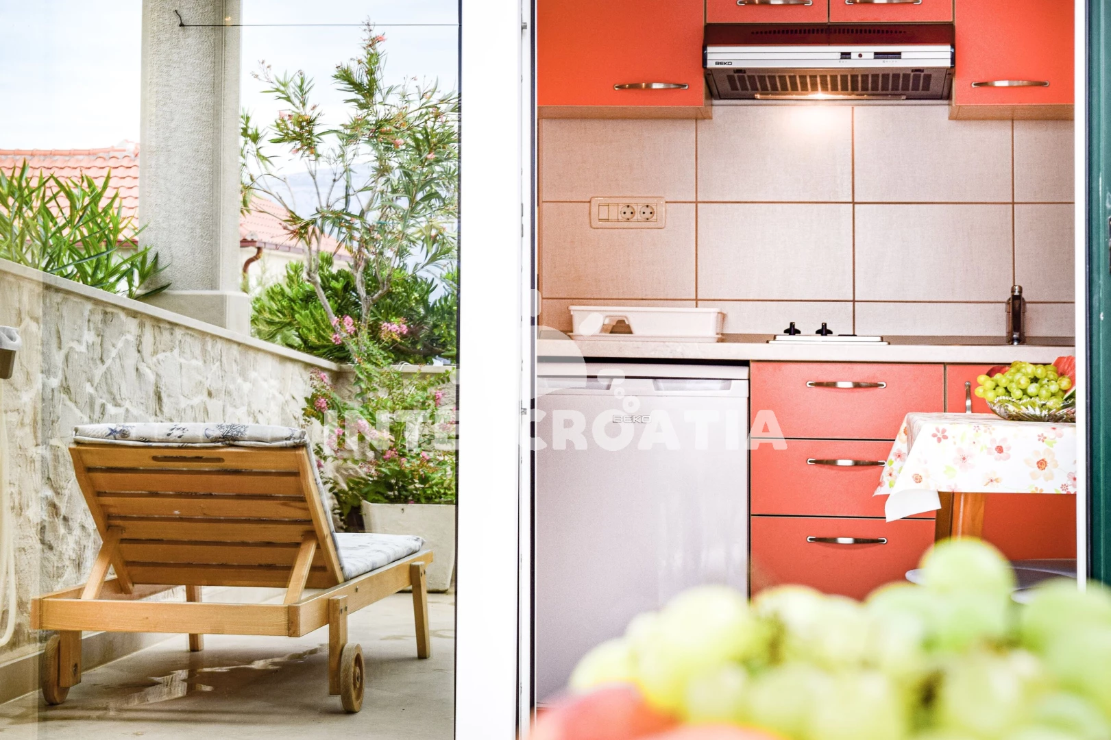 Vzdálenosti: Moře 80 m, pláž 100 m (skalnatá, oblázková a betonové desky), restaurace 300 m, centrum 300 m, supermarket 300 m, ambulance 7 km, trajekt 40 km, letiště 80 km,