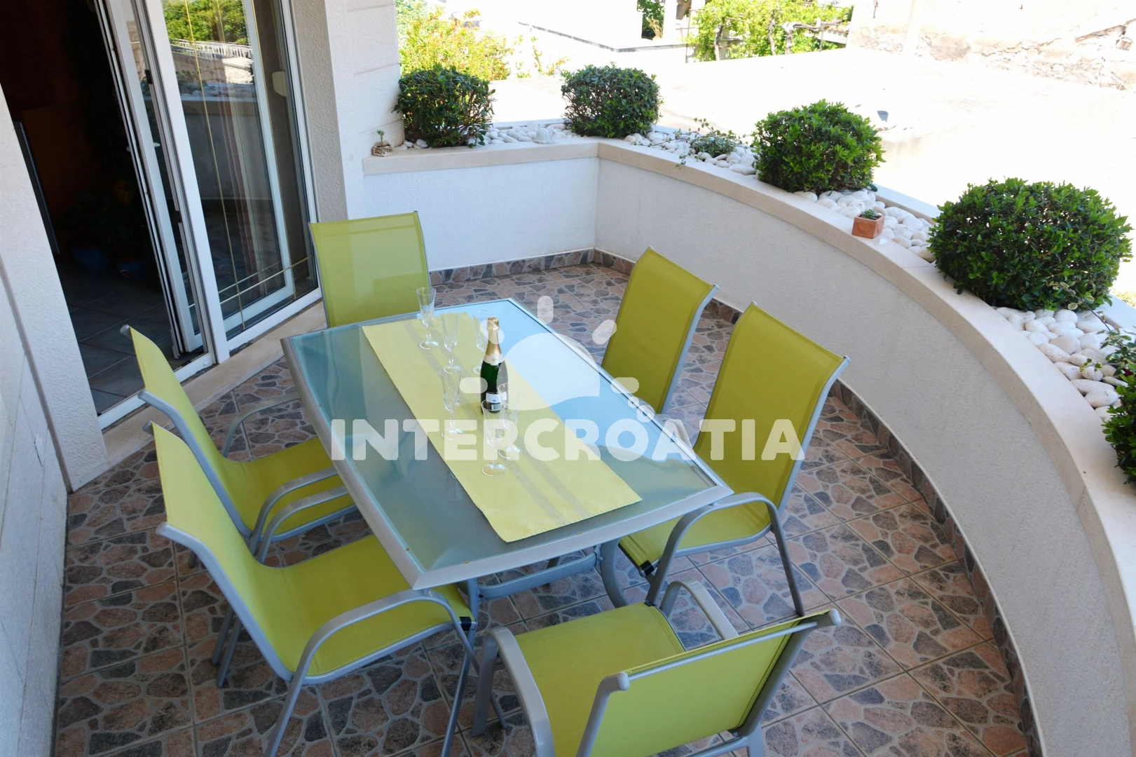 Apartmán (110 m2) s terasou, a výhledem na moře. Nachází se v 1. patře objektu. Apartmán má 3 ložnice a je vhodný pro až 6 osob. Kuchyňská linka je vybavena varnou deskou, kávovarem, troubou,…