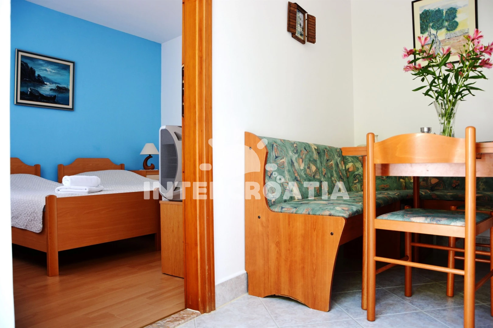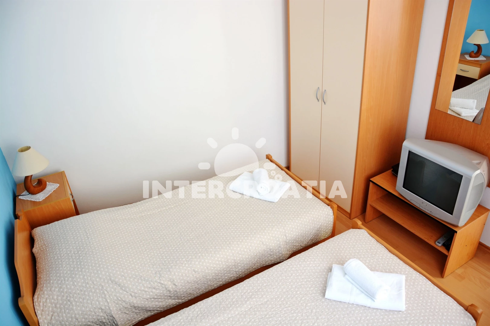 Apartmán (55 m2) s terasou. Nachází se v 1. patře objektu. Apartmán má 2 ložnice a je vhodný pro až 4 osoby. Kuchyňská linka je vybavena varnou deskou, troubou, toustovačem, kávovarem, myčkou na nádobí, nádobím, lednicí, mrazákem. K dispozici televize se satelitním programem. První ložnice s dvoulůžkem. Druhá ložnice se 2 jednolůžky. Koupelna se sprchovým koutem, umyvadlem, fénem a WC. Hostům je k dispozici parkování u objektu zdarma.