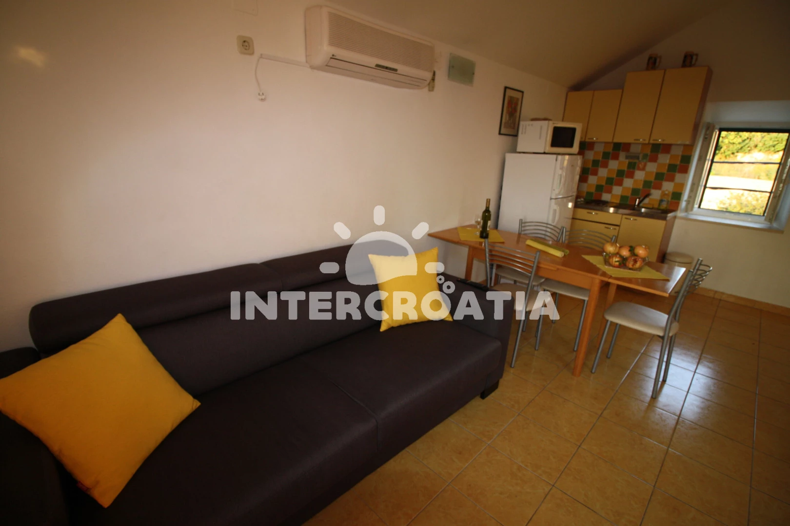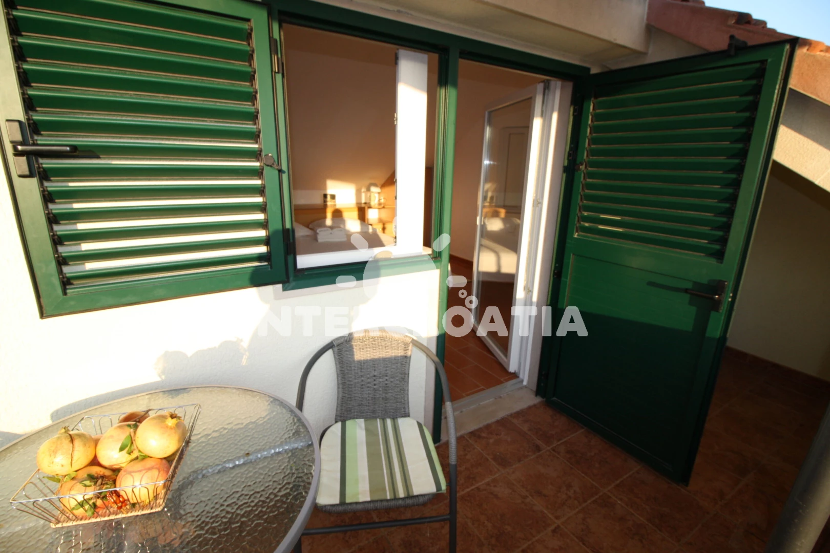 Apartmán (55 m2) s balkonem, a výhledem na moře. Nachází se v podkroví objektu. Apartmán má 1 ložnici a je vhodný pro až 4 osoby. Kuchyňská linka je vybavena varnou deskou, troubou, kávovarem,…