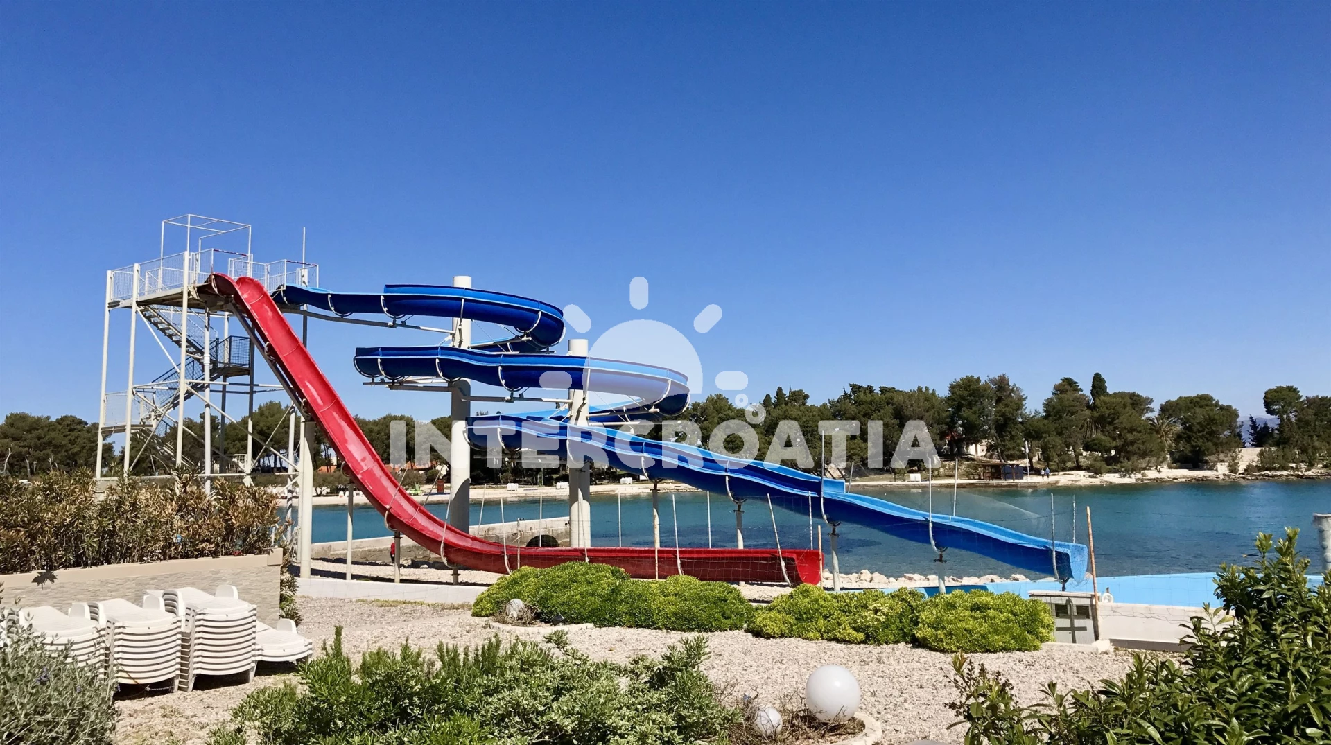 Vzdálenosti: Moře 50 m, pláž 80 m (oblázková a betonové desky), restaurace 10 m, bar 10 m, centrum 10 m, supermarket 50 m, marina 80 m, pošta 80 m, banka 80 m, kotviště pro čluny 80 m, diskotéka 100 m, muzeum 100 m, lékárna 100 m, směnárna 100 m, půjčovna motorových člunů 200 m, půjčovna kol 200 m, veřejná doprava 300 m, ambulance 300 m, trajekt (Supetar) 300 m, čerpací stanice 300 m, tenisové kurty 400 m, potápění 400 m, mini golf 400 m,