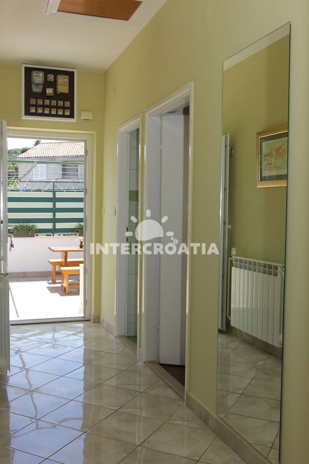 Apartmán se nachází 80 m od moře a pláže. Pláž je oblázková a betonové desky.
