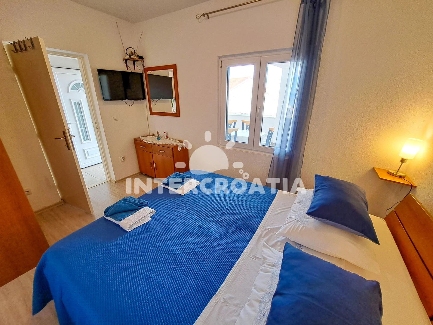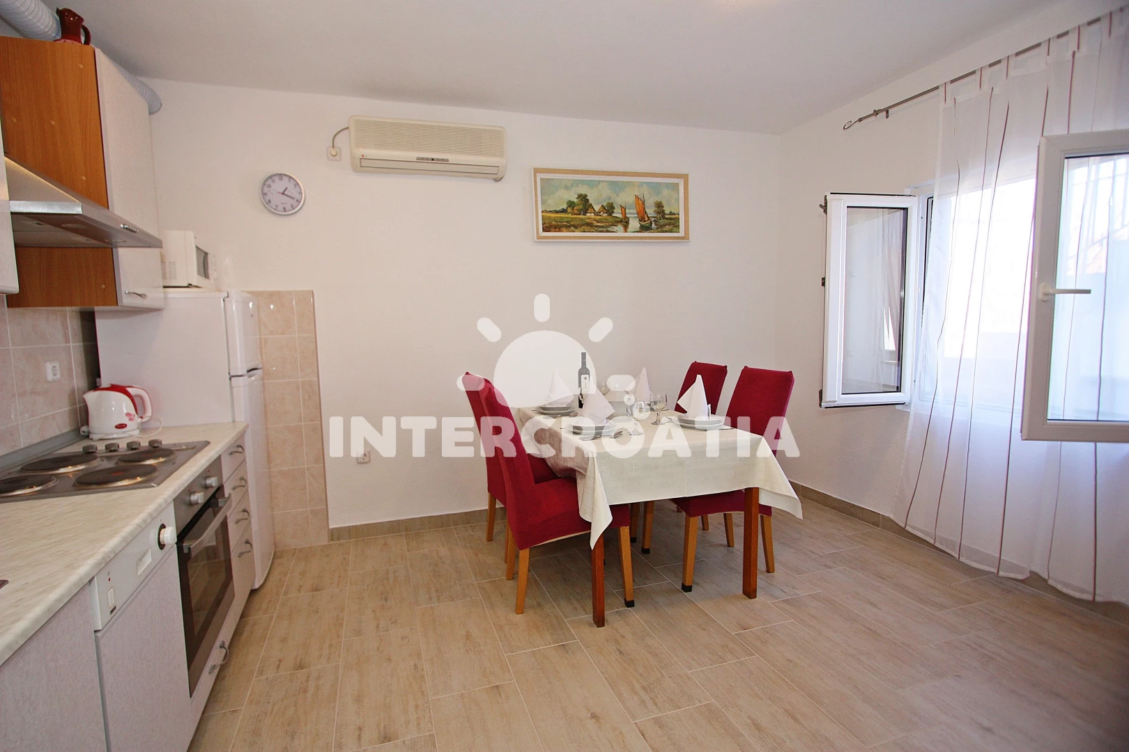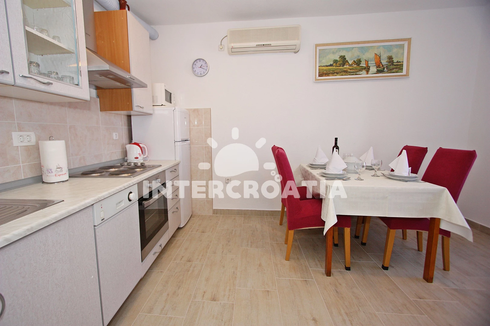 Apartmán (50 m2) s terasou, a výhledem na moře. Nachází se v 1. patře objektu. Apartmán má 2 ložnice a je vhodný pro až 4 osoby. Kuchyňská linka je vybavena varnou deskou, troubou, myčkou na nádobí,…