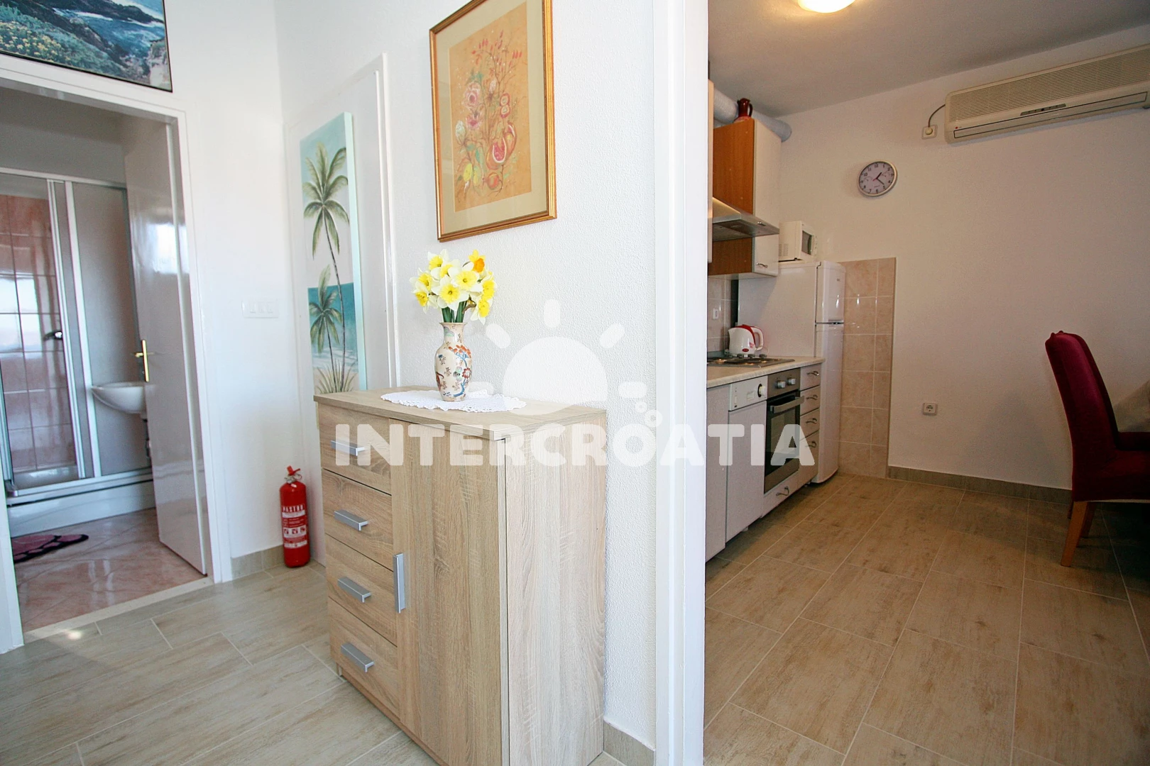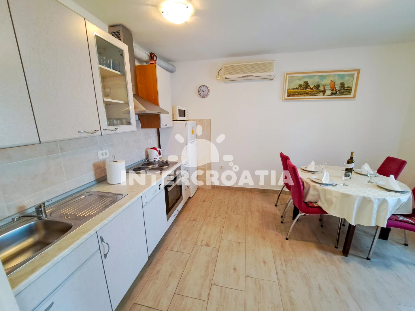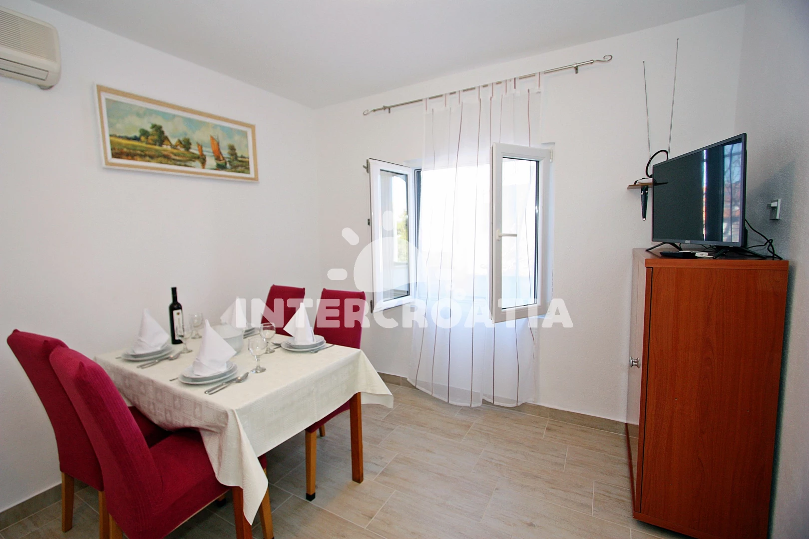 Apartmán (50 m2) s terasou, a výhledem na moře. Nachází se v 1. patře objektu. Apartmán má 2 ložnice a je vhodný pro až 4 osoby. Kuchyňská linka je vybavena varnou deskou, troubou, myčkou na nádobí,…