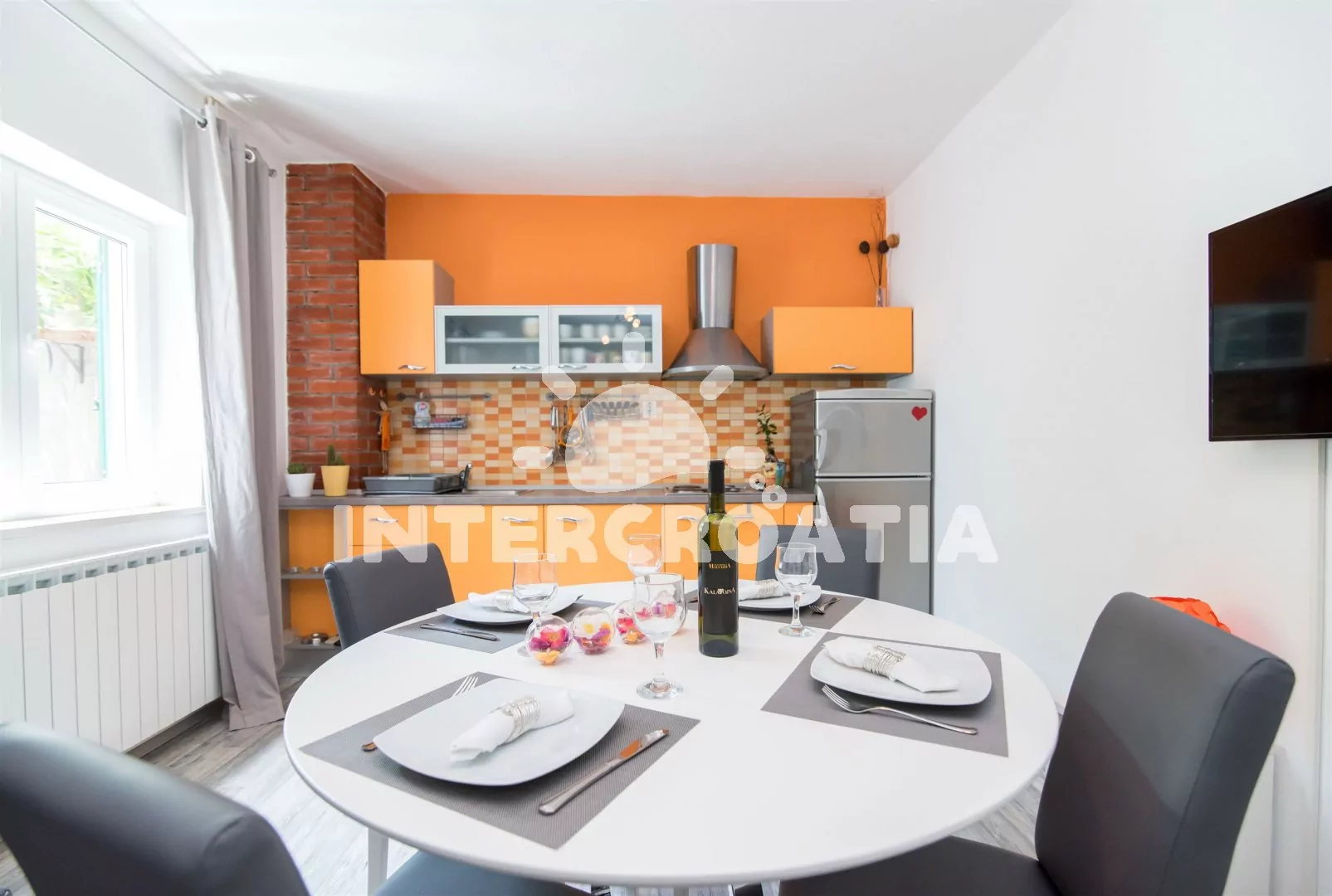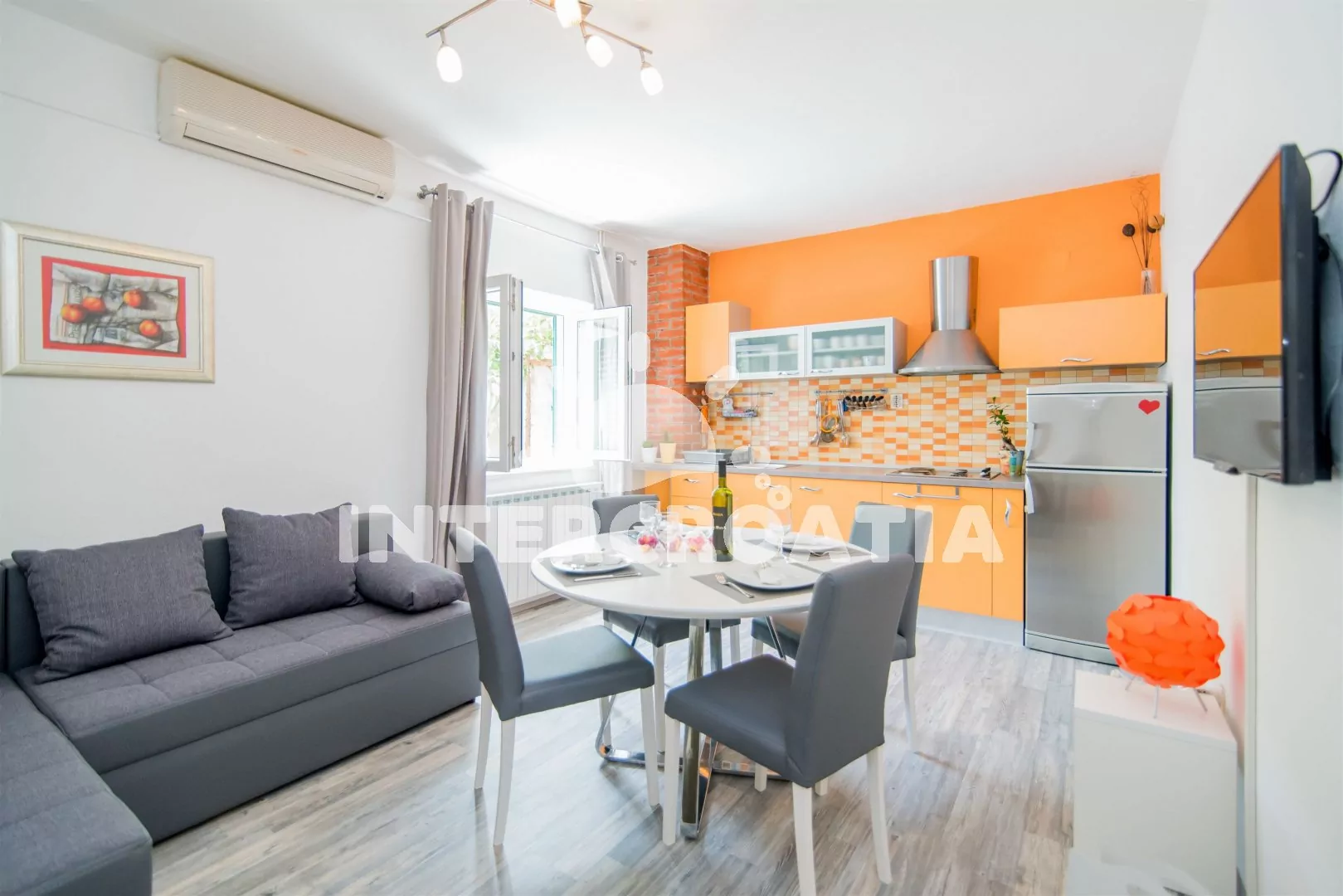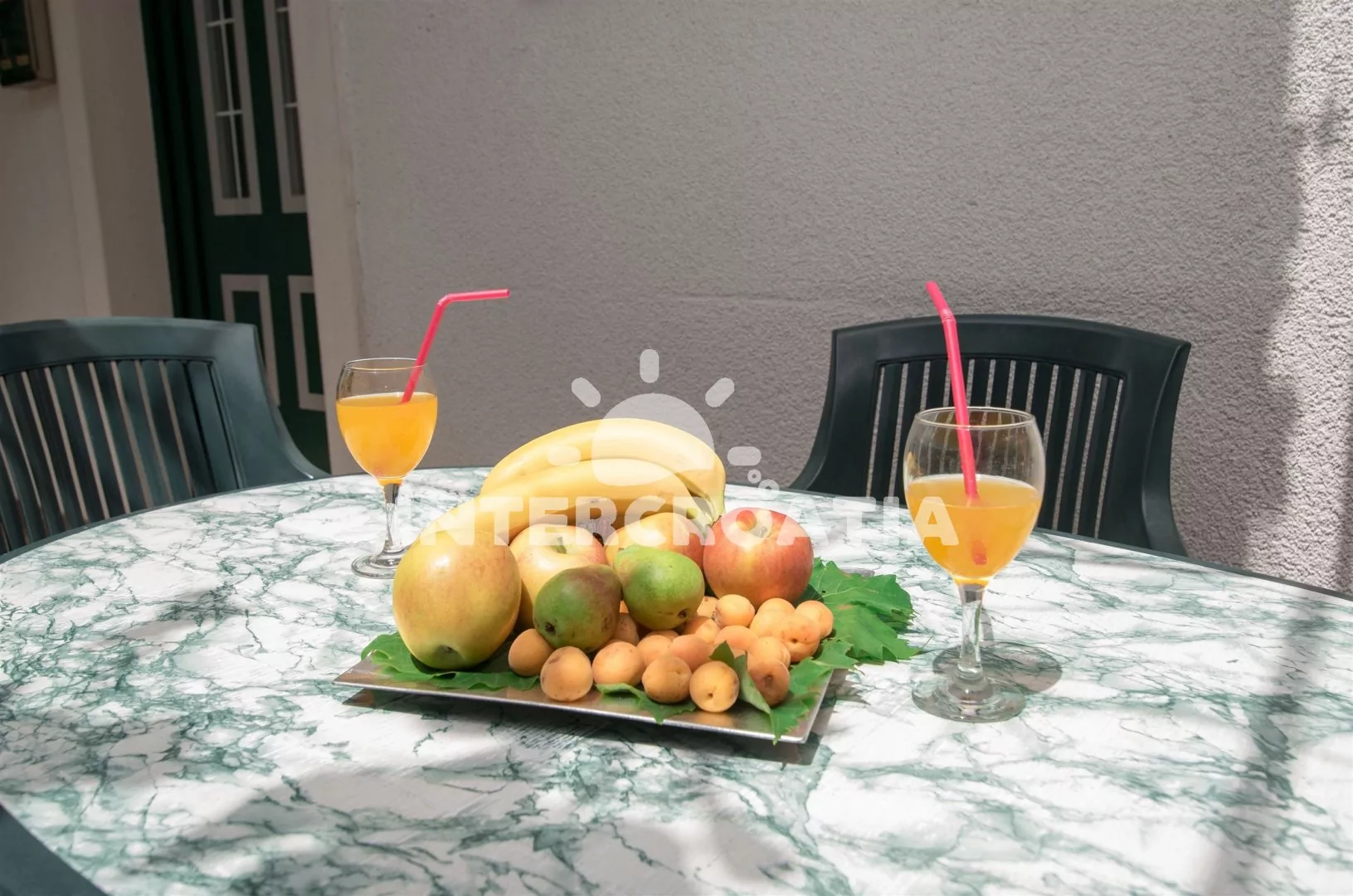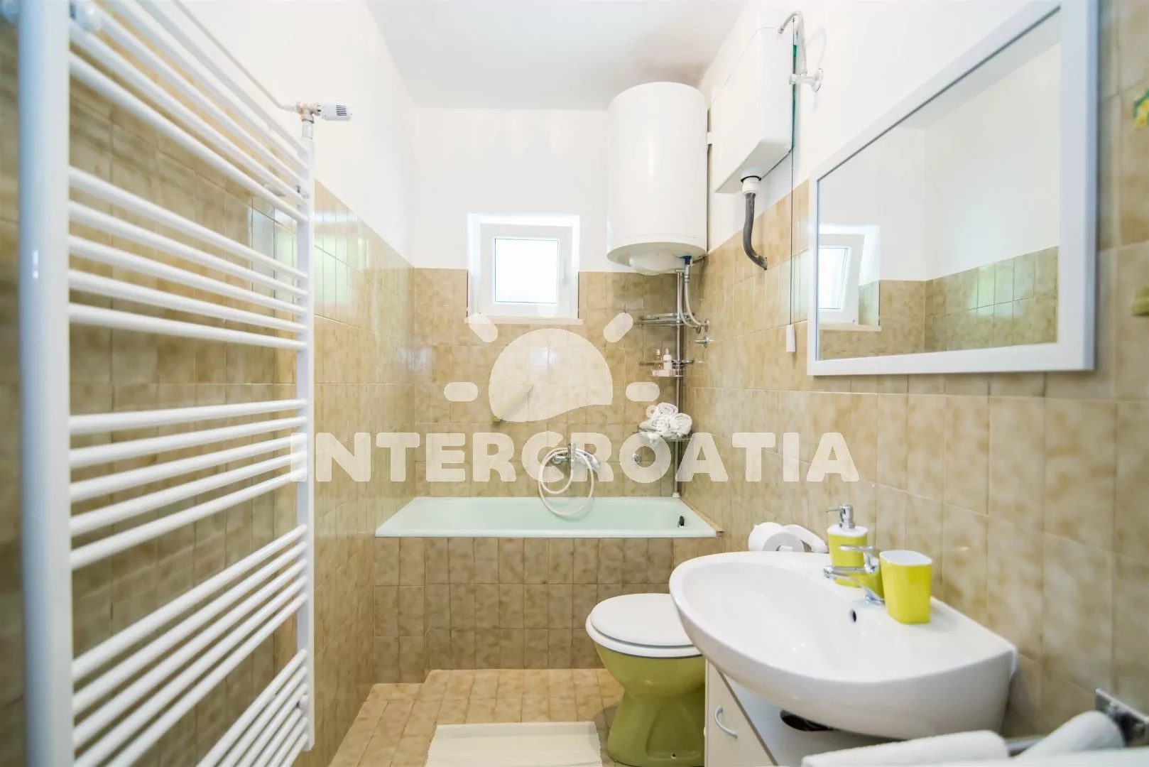 Vzdálenosti: Moře 150 m, pláž (písčitá a oblázková) 400 m, centrum 150 m, obchod 150 m, restaurace 70 m, muzeum 150 m, diskotéka 150 m, lékárna 300 m, ambulance 300 m, směnárna 350 m, tenisový kurt 200 m, mini golf 200 m, banka 150 m, pošta 150 m, bar 150 m, půjčovna kol 150 m, potápěčský klub 200 m, marina 150 m, kotviště pro čluny 150 m, pronájem motorových člunů 150 m, čerpací stanice 300 m, veřejná doprava 400 m, trajekt 400 m.