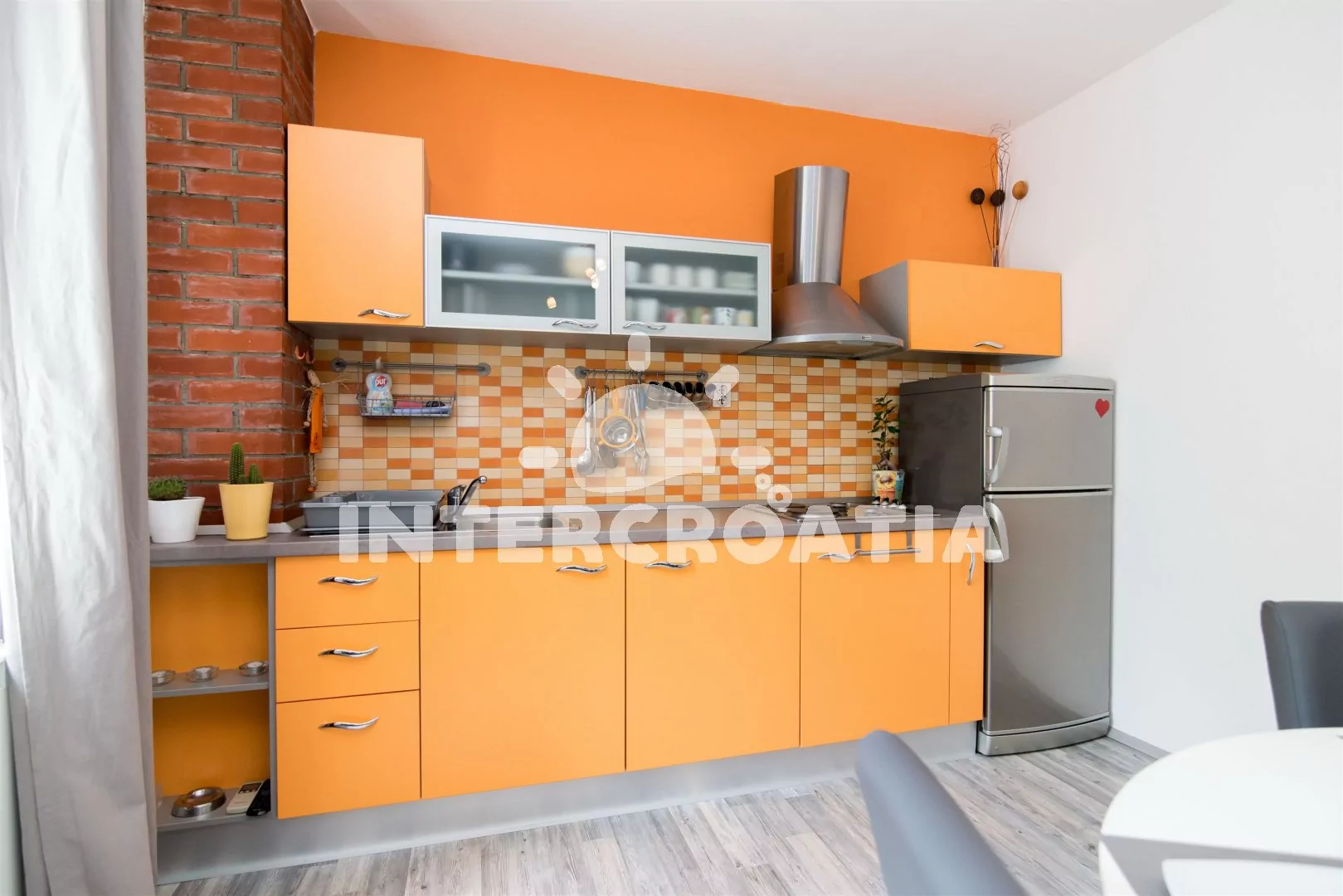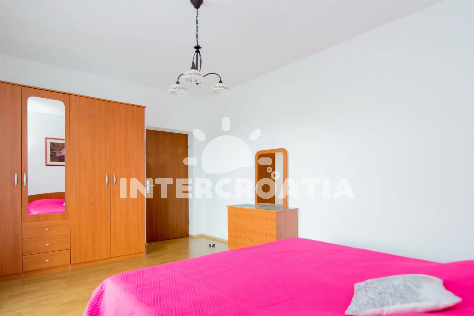 Velmi pěkně zařízený třípokojový apartmán se 2 ložnicemi, balkonem a terasou. Vstup, obývací pokoj spojený s kuchyní. Kuchyňská linka s varnou deskou (elektřina/plyn), lednicí s mrazákem a nádobím. V…