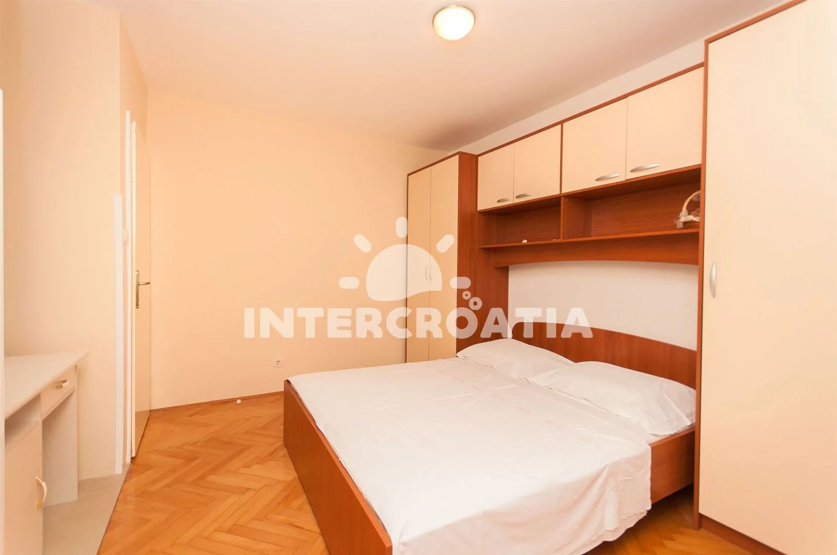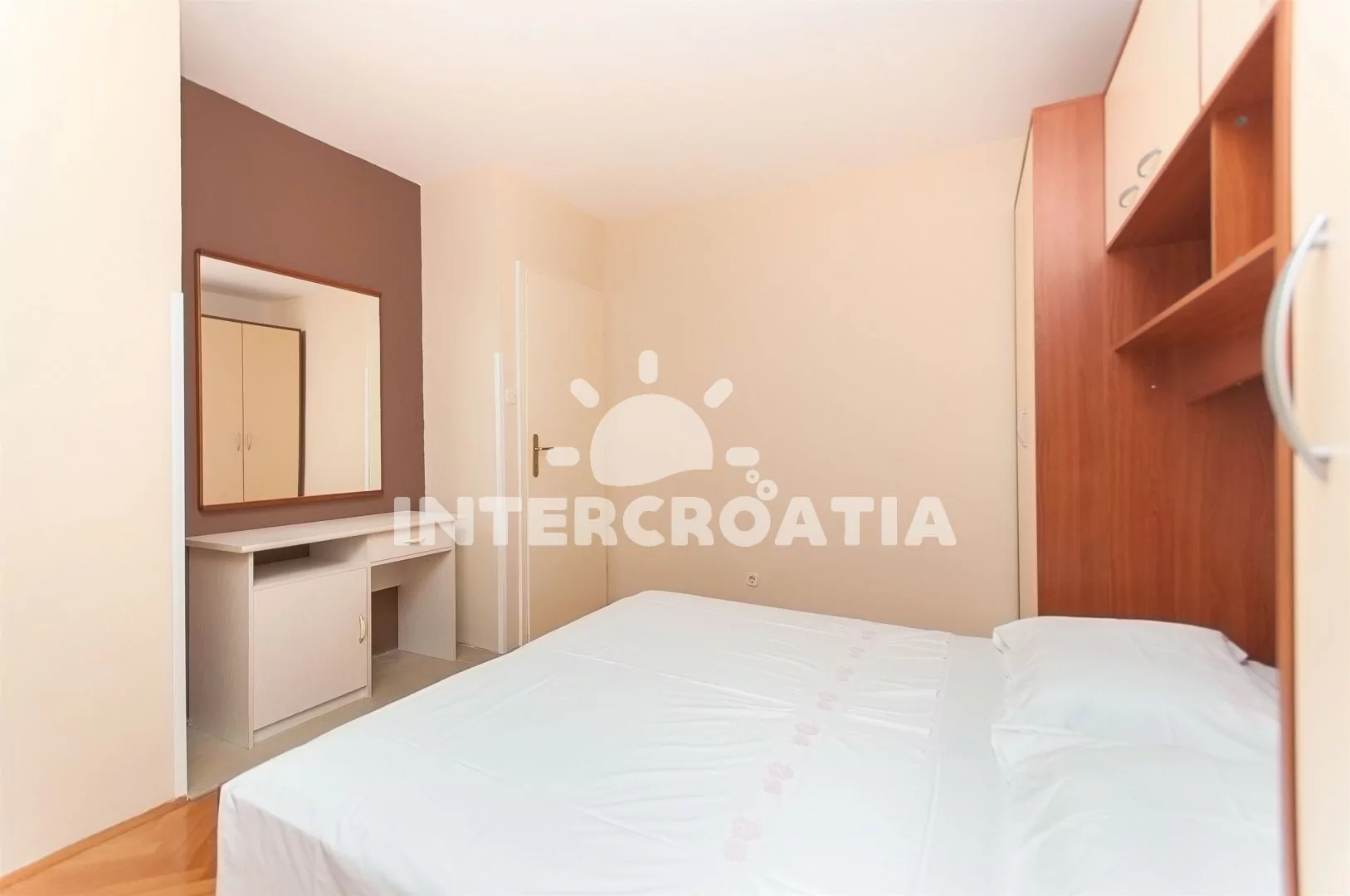 Apartmán (60 m2) s terasou a venkovním posezením se nachází v přízemí domu. Apartmán má 2 ložnice a je vhodný pro 4 osoby. Obývací pokoj je spojený s kuchyní. Kuchyňská linka je vybavena varnou deskou, troubou, nádobím a lednicí s mrazákem. Obývací pokoj s jídelním stolem, pohovkou, televizí se satelitním programem, klimatizací a vstupem na terasu. První ložnice s jedním dvoulůžkem. Druhá ložnice s dvěma jednolůžky. Koupelna se sprchovým koutem, umyvadlem, fénem, pračkou a wc. Hostům je k dispozici parkování u objektu zdarma.