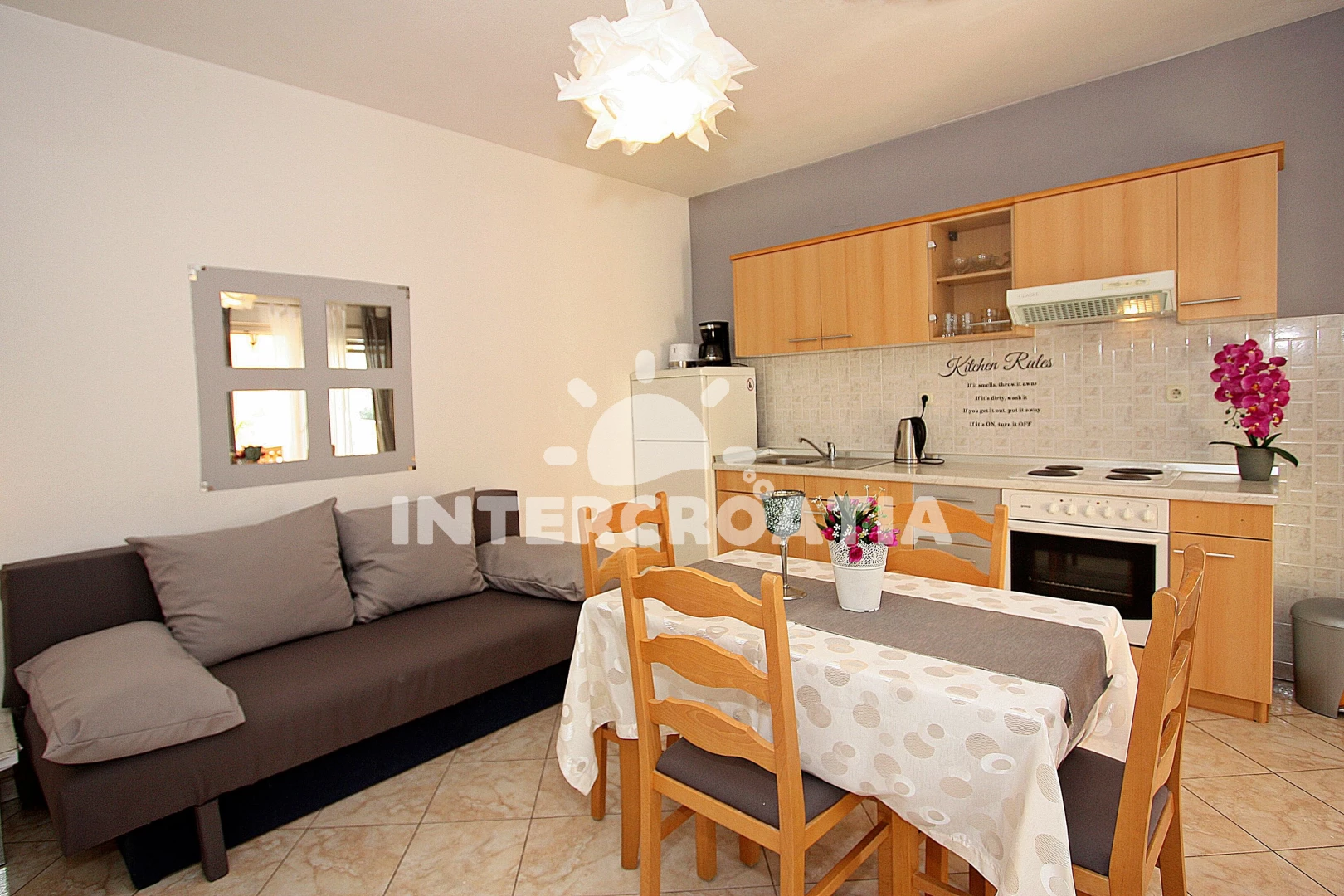 Domácí zvířata jsou povolena ( 8 € na den ). V ceně pobytu zahrnuto: WiFi, klimatizace (část místností), topení, povlečení, ručníky, pračka, dětská postýlka (služba na požádání), závěrečný úklid, pobytová taxa. Pronajímatel se dorozumí chorvatsky, anglicky, německy, italsky. Pronajímatel vás bude očekávat po 16:00. V den odjezdu je nutné vyklidit apartmán do 10:00.