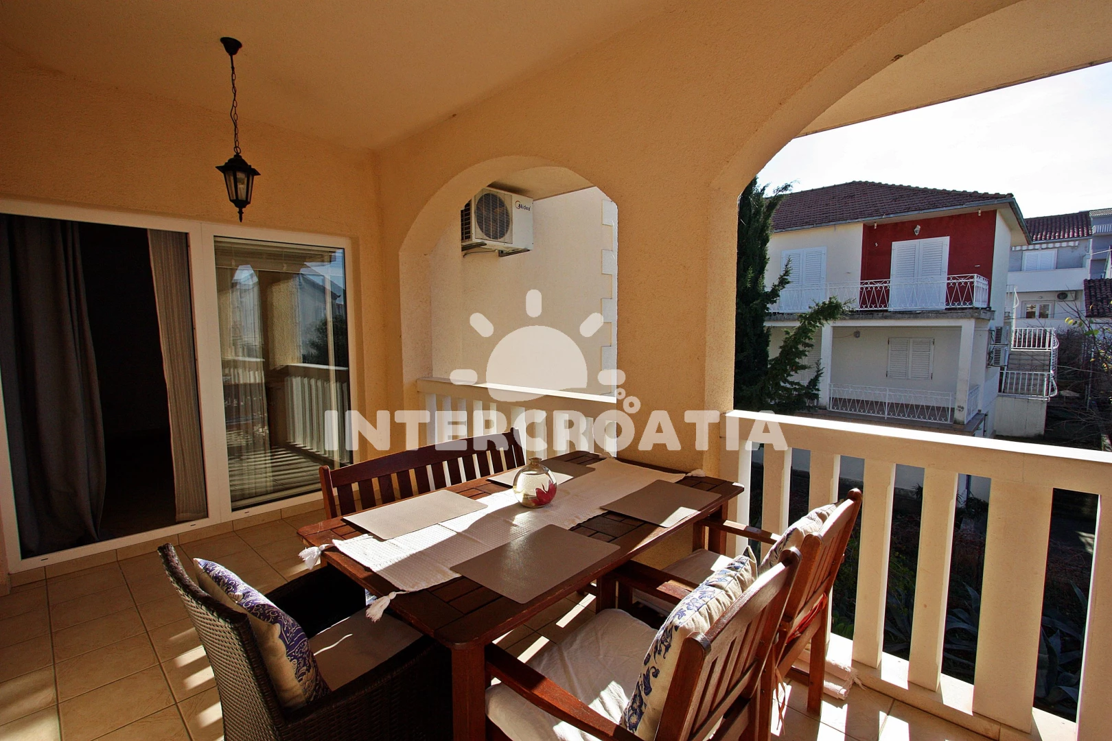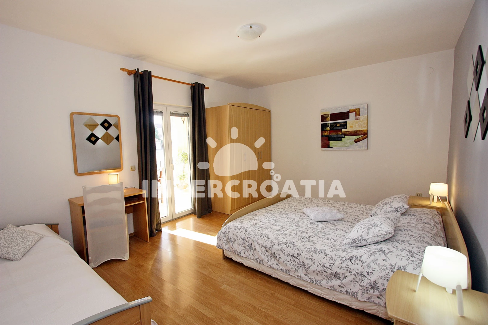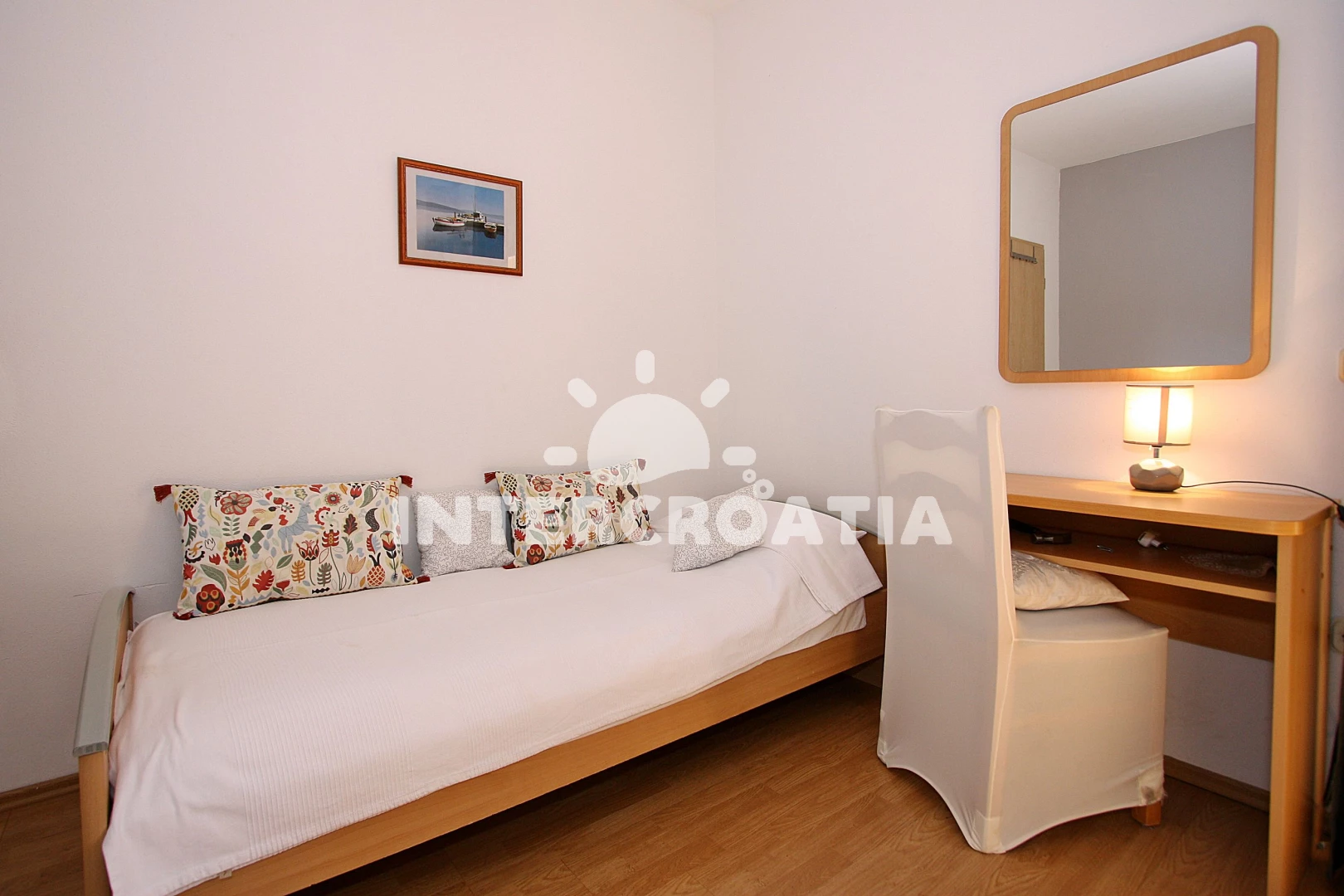 Vzdálenosti: Moře 300 m, pláž 300 m (oblázky), tenisové kurty 150 m, supermarket 200 m, restaurace 300 m, lékárna 300 m, ambulance 300 m, směnárna 300 m, bar 400 m, banka 500 m, pošta 500 m, centrum 800 m, marina 800 m, kotviště pro čluny 800 m, čerpací stanice 1 km, letiště 20 km,