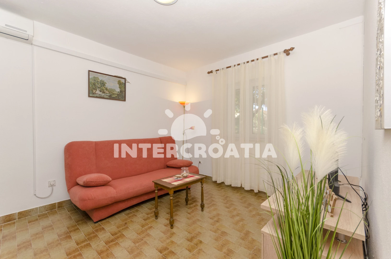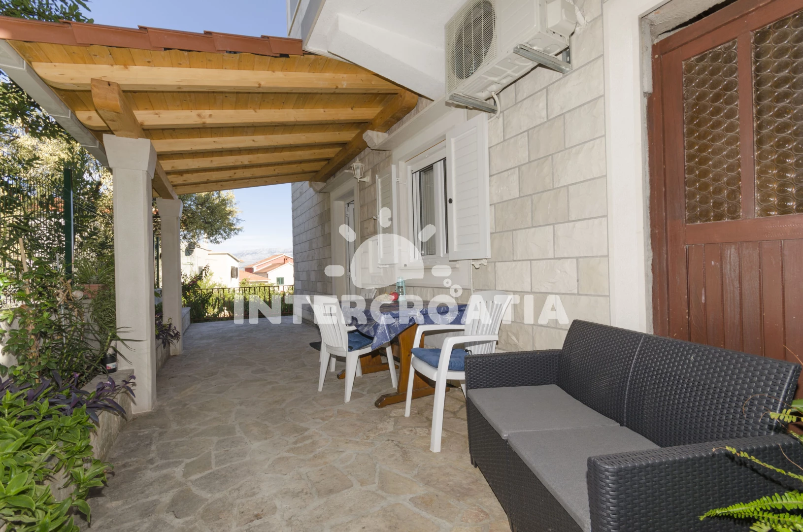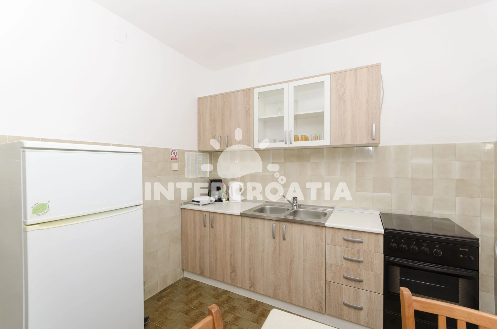 Velmi čistý byt dostatečného standardu, prostorný a praktický, umístěný v přízemí, takže i přes vedro nebylo horko. Velká terasa s venkovním stolem a dalšími křesly a konferenčním stolkem. V bytě je klimatizace, lednice, kuchyňská linka s kávovarem.