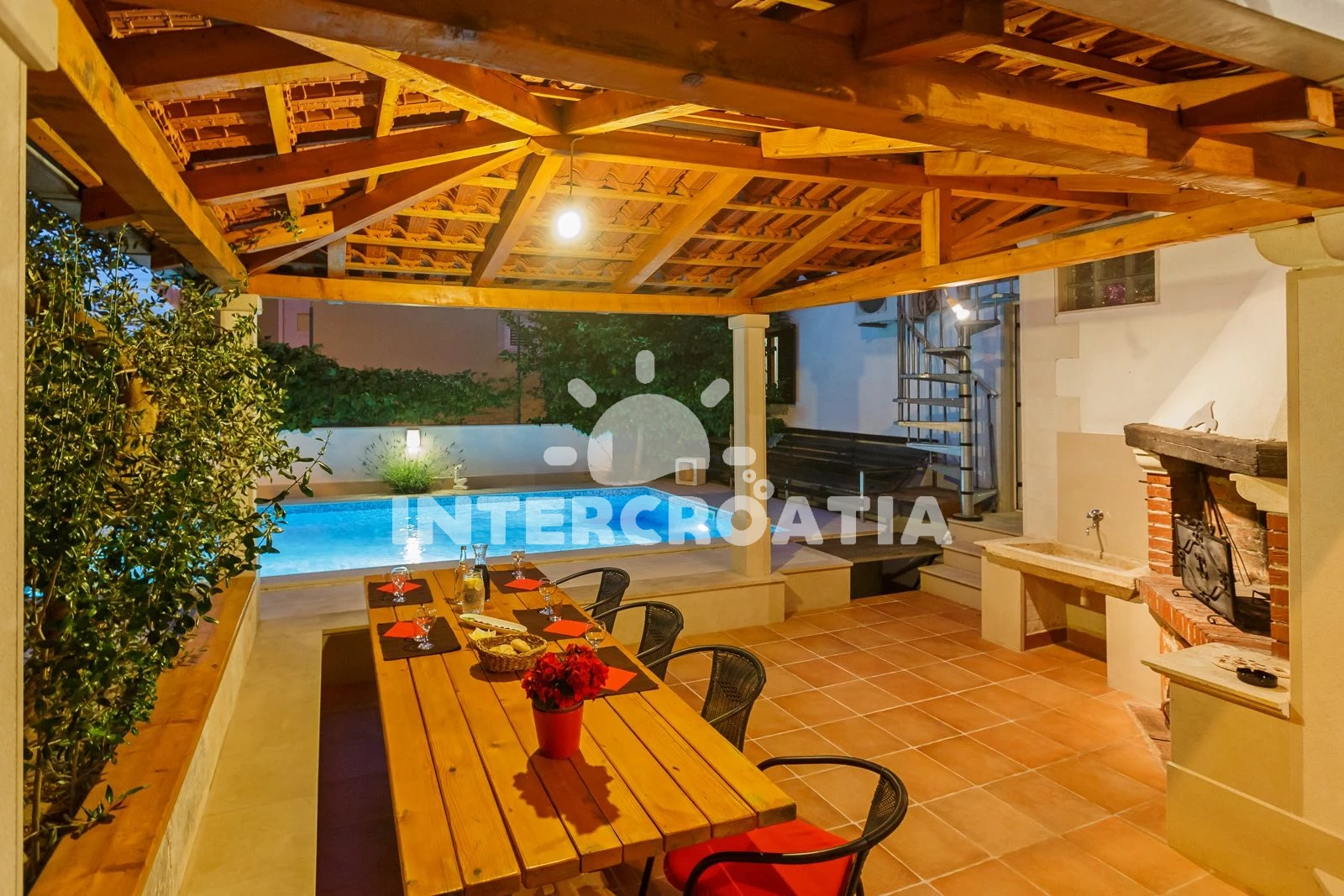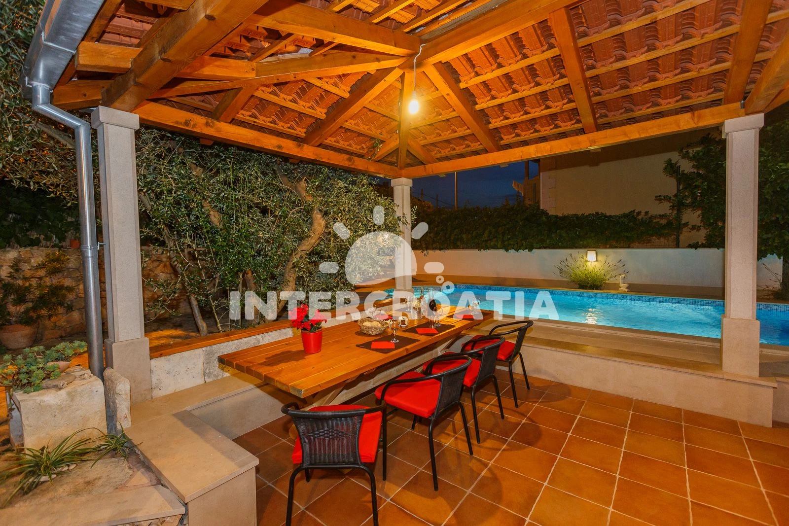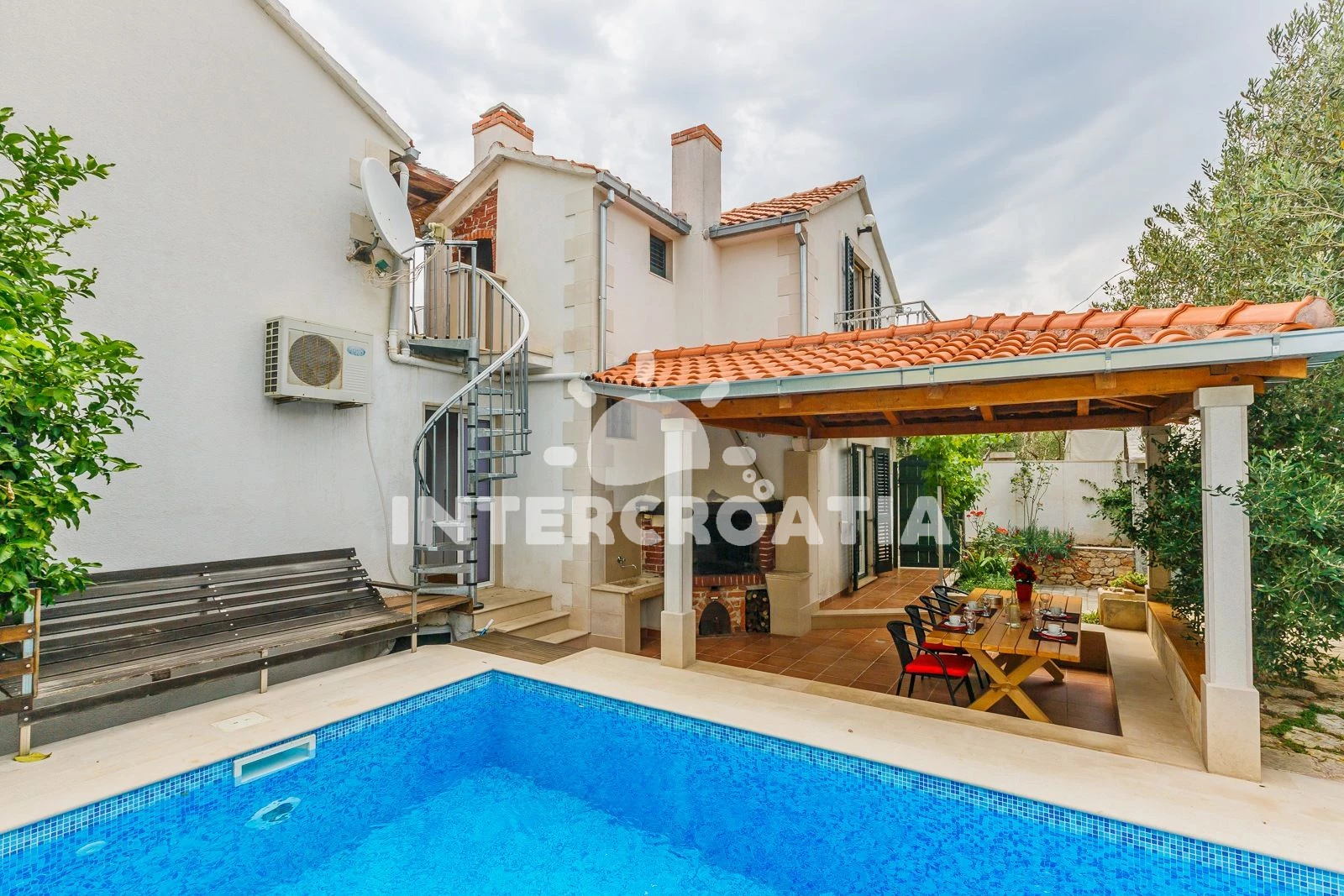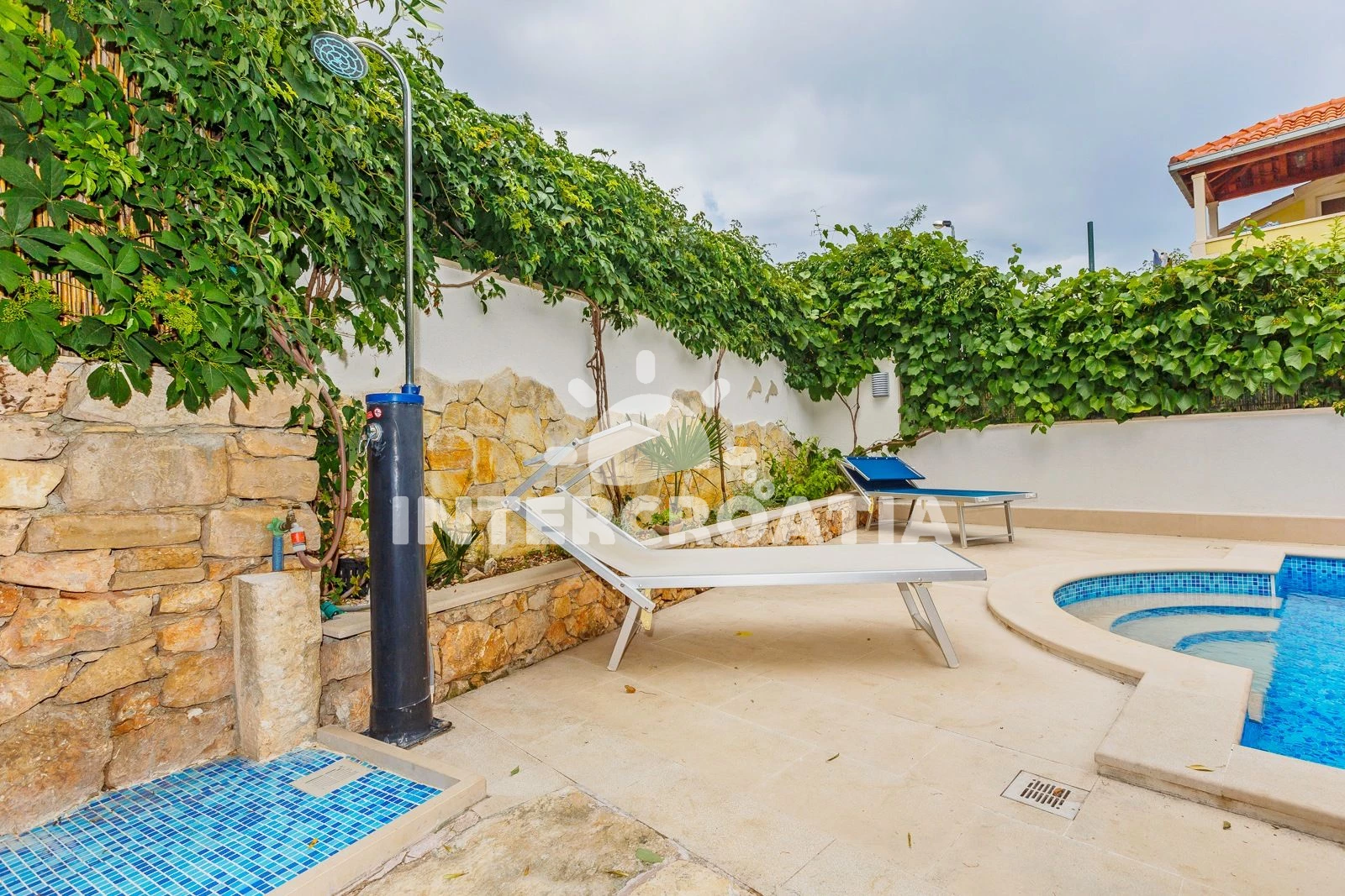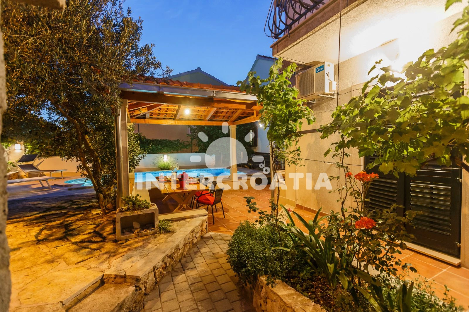 Apartmán se nachází od moře a pláže. Pláž je . Apartmán disponuje bazénem s lehátky pro ubytované hosty. U objektu je k dispozici společná zahrada s posezením a grilem.