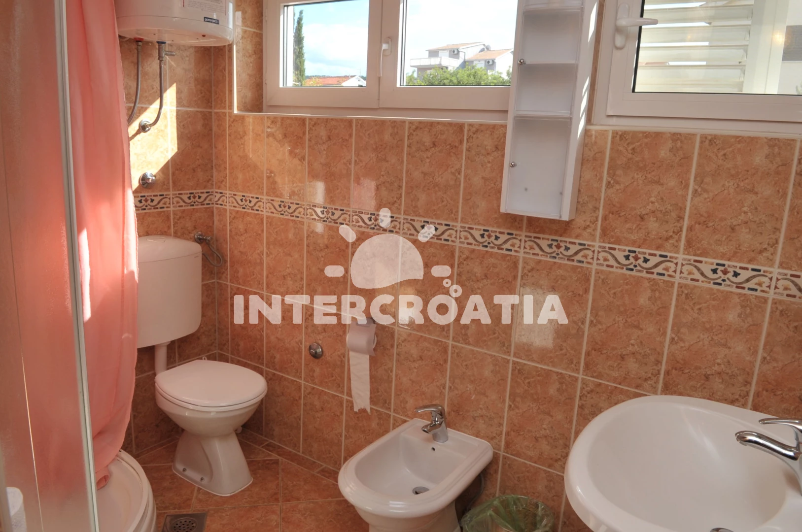 Vzdálenosti: Moře 480 m, pláž 280 m (písčitá a oblázková), supermarket 180 m, bar 200 m, tenisové kurty 250 m, potápění 250 m, restaurace 450 m, centrum 700 m, pošta 800 m, banka 800 m, diskotéka 800 m, směnárna 1 km, veřejná doprava 1,4 km, čerpací stanice 1,4 km, ambulance 1,5 km, lékárna 1,5 km, trajekt (Supetar) 3 km, letiště (Split) 43 km,