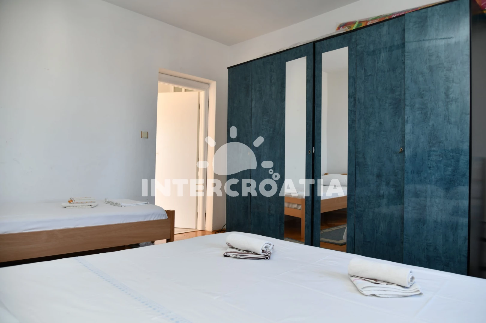 Apartmán (104 m2) s balkonem, a výhledem na moře. Nachází se ve 2. patře objektu. Apartmán má 3 ložnice a je vhodný pro až 7 osob. Kuchyňská linka je vybavena varnou deskou, kávovarem, troubou,…