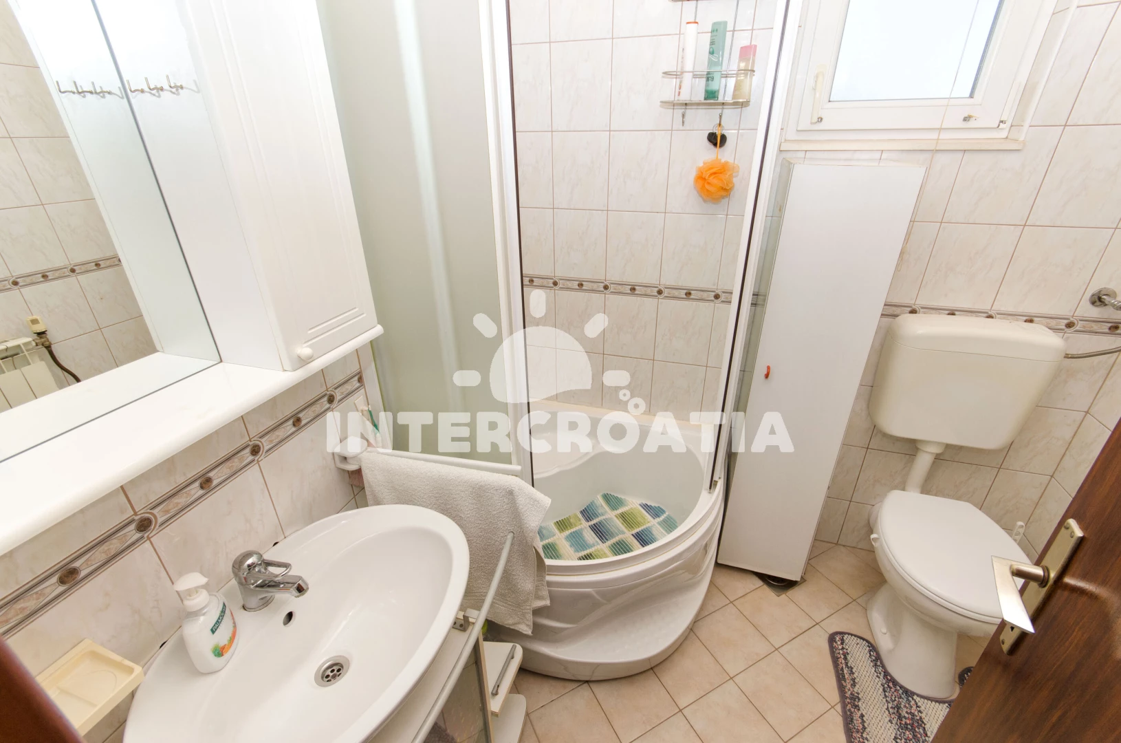 Apartmán se nachází 30 m od moře a pláže. Pláž je skalnatá, oblázková a betonové desky. U objektu je k dispozici společná zahrada s posezením a grilem.