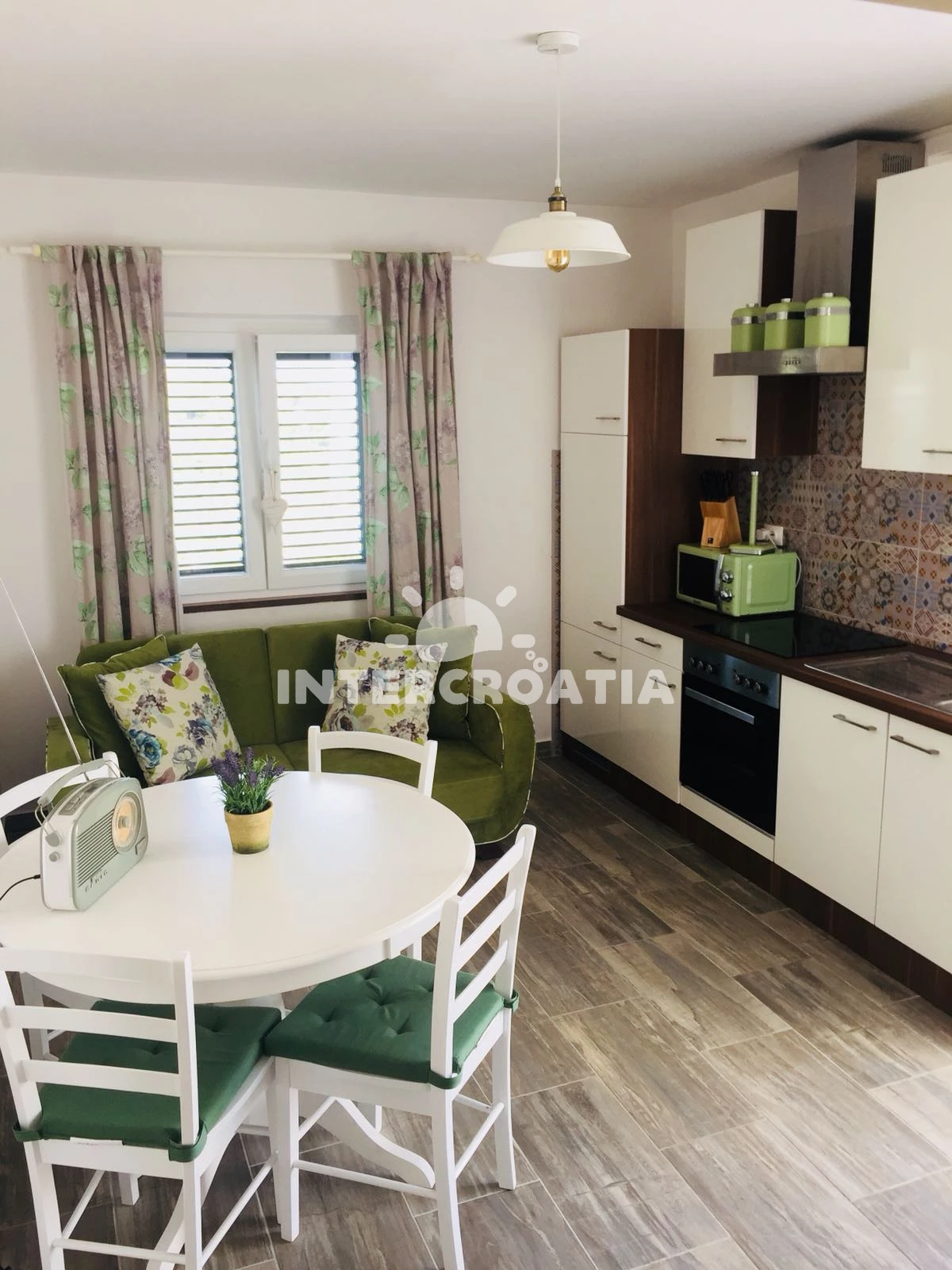 Apartmán (50 m2) s terasou, a výhledem na moře. Nachází se v 1. patře objektu. Apartmán má 2 ložnice a je vhodný pro až 5 osob. Kuchyňská linka je vybavena varnou deskou, toustovačem, troubou,…