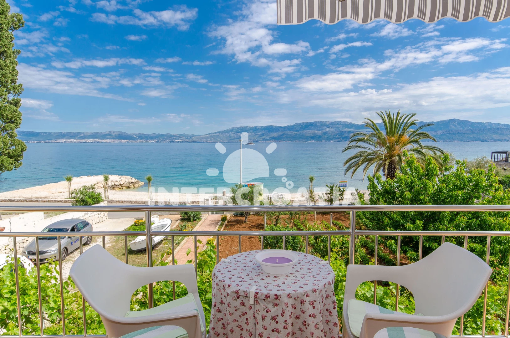 Vzdálenosti: Moře 10 m, pláž 10 m (oblázky), bar 20 m, supermarket 500 m, půjčovna kol 500 m, směnárna 500 m, restaurace 500 m, pošta 500 m, veřejná doprava 500 m, centrum 500 m, půjčovna motorových člunů 500 m, ambulance 7 km, diskotéka 7 km, lékárna 7 km, marina 7 km, muzeum 7 km, čerpací stanice 7 km, tenisové kurty 7 km, mini golf 7 km, banka 7 km, trajekt (Supetar) 7,0 km,
