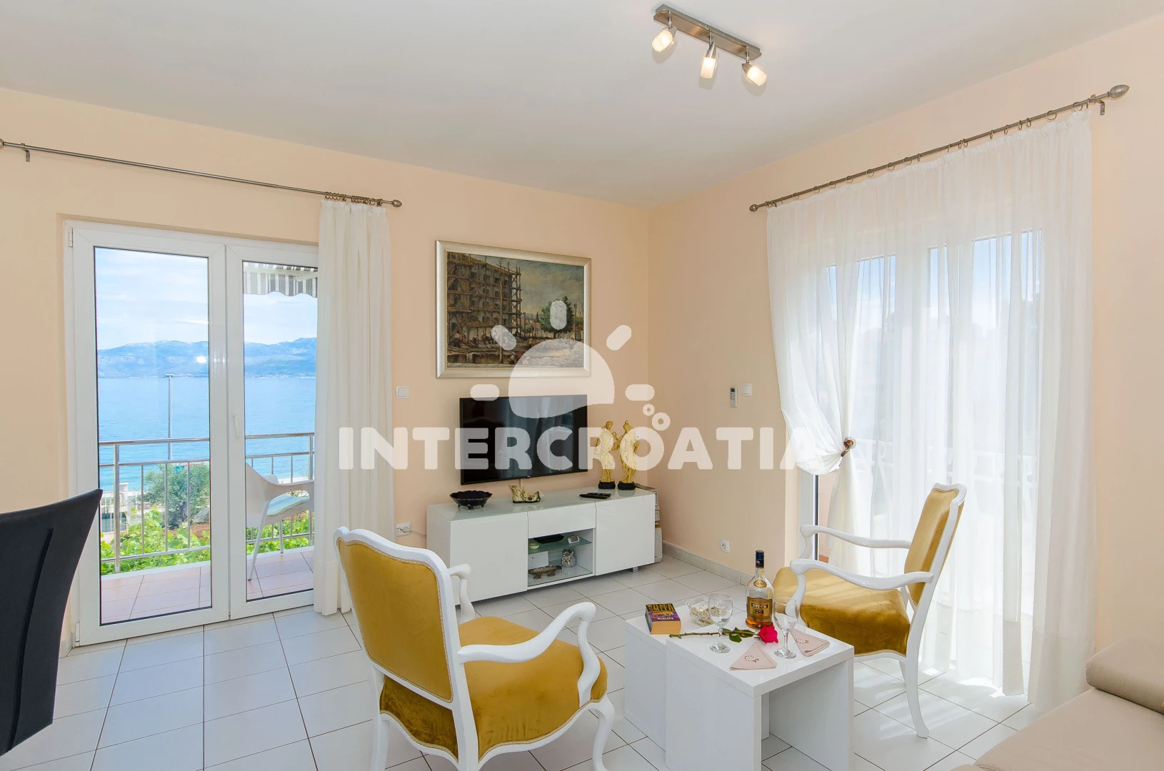 Apartmán (60 m2) s terasou, a výhledem na moře. Nachází se v 1. patře objektu. Apartmán má 2 ložnice a je vhodný pro až 4 osoby. Kuchyňská linka je vybavena varnou deskou, troubou, kávovarem, toustovačem, myčkou na nádobí, mikrovlnnou troubou, rychlovarnou konvicí, nádobím, lednicí, mrazákem. K dispozici televize se satelitním programem, radio. První ložnice s dvoulůžkem. Druhá ložnice se 2 jednolůžky. Koupelna se sprchovým koutem, umyvadlem, fénem a WC.