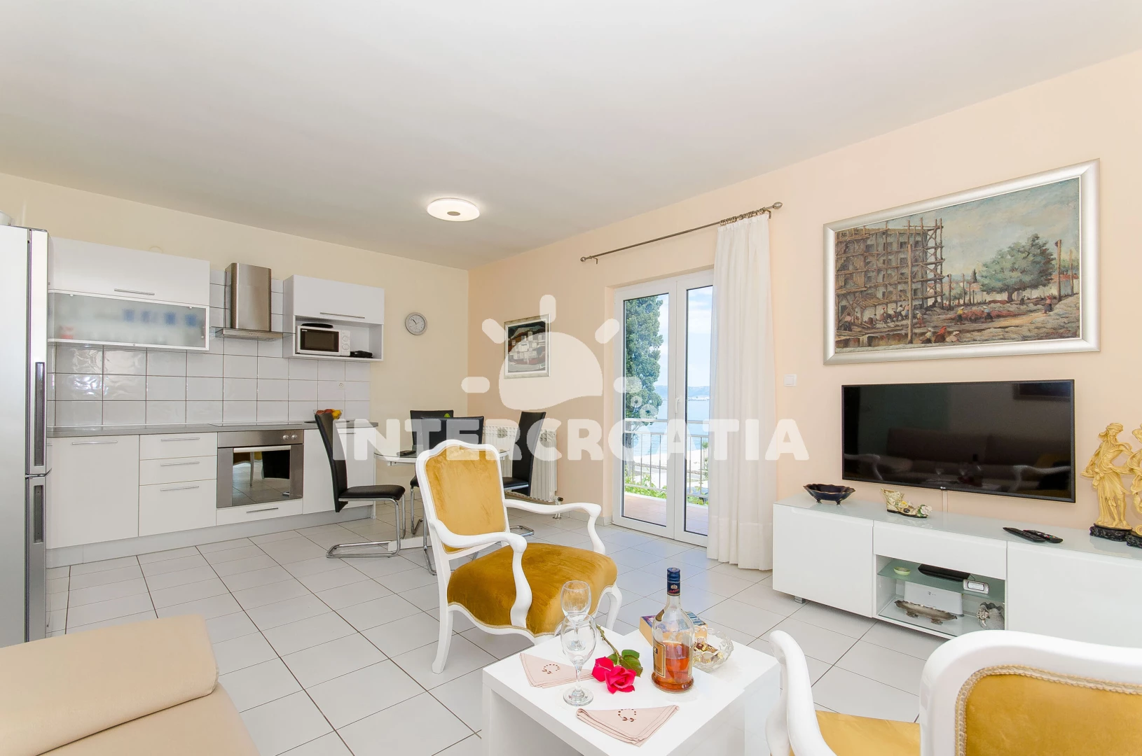 Apartmán (60 m2) s terasou, a výhledem na moře. Nachází se v 1. patře objektu. Apartmán má 2 ložnice a je vhodný pro až 4 osoby. Kuchyňská linka je vybavena varnou deskou, troubou, kávovarem,…