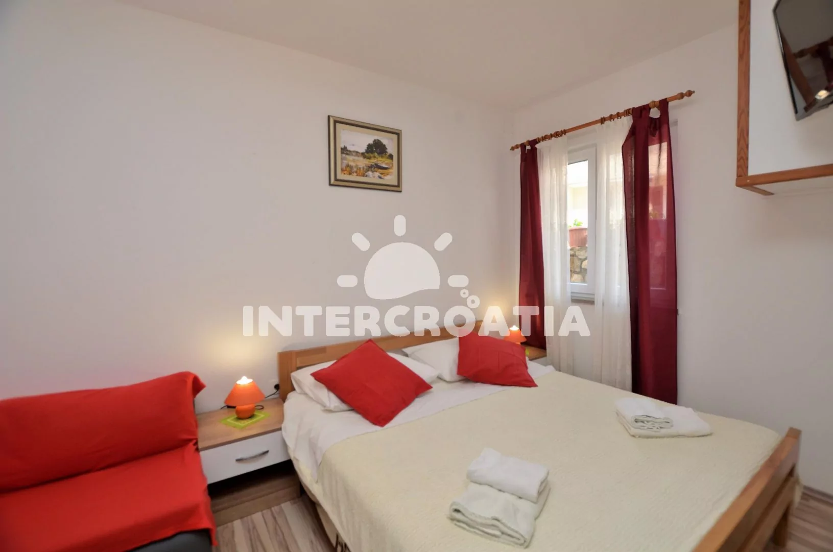 Vzdálenosti: Moře a pláž 350 m, supermarket 50 m, restaurace, bar 100 m, centrum, lékárna, směnárna, banka 250 m, veřejná doprava, pošta, půjčovna motorových člunů a kol, čerpací stanice, tenis, minigolf, diskotéka, muzeum 300 m, ambulance 400 m, potápění 450 m, přístav 800 m, trajekt 12 km, letiště 25 km.