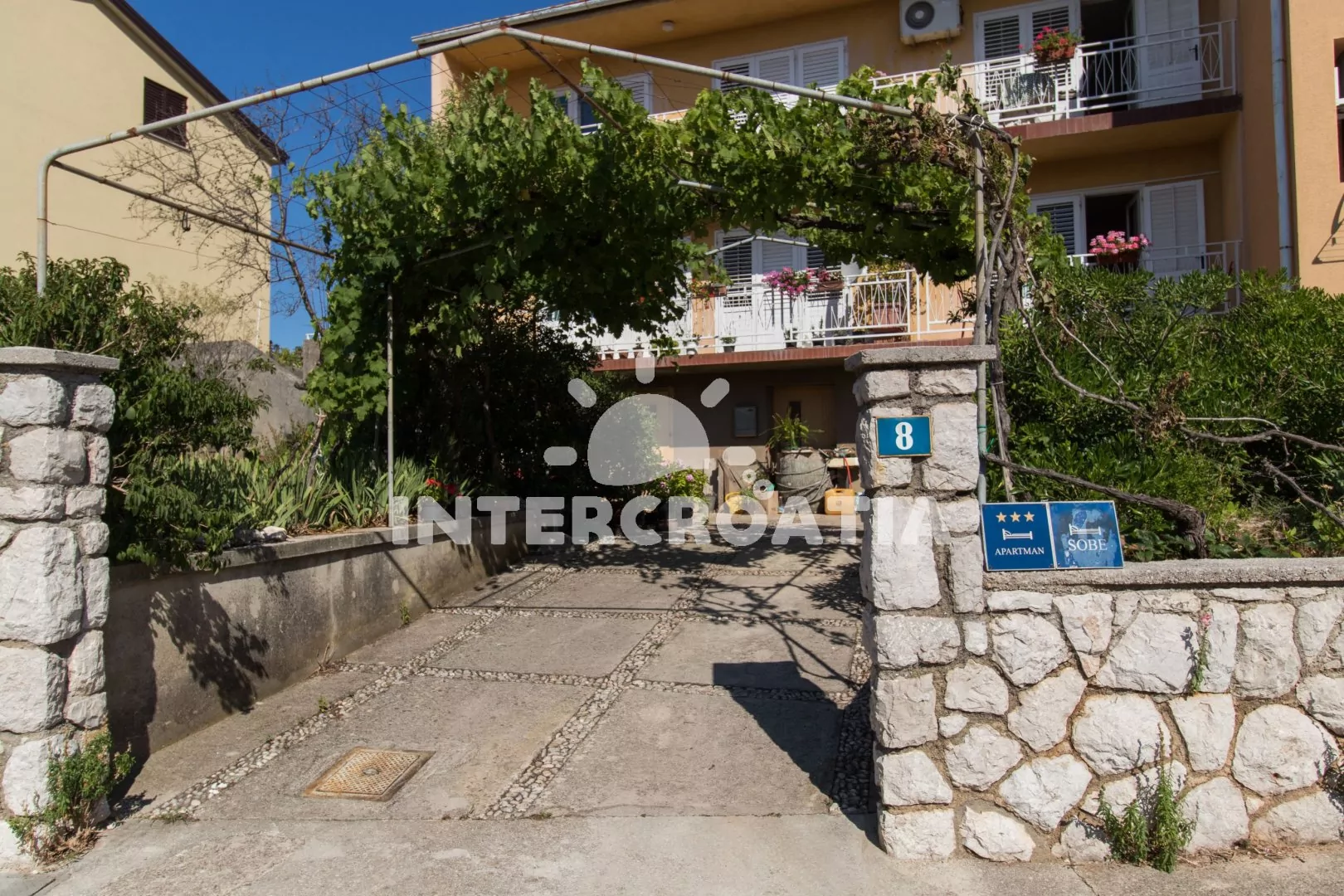 Vhodně umístěný dům s dvěma apartmány se nachází v docházkové vzdálenosti od moře, oblázkové pláže a centra města. Apartmány disponují lodžiemi a venkovním posezením. Parkovací místa u objektu.