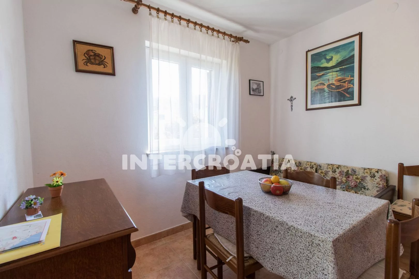 Apartmán (50 m2) s balkonem, lodžií a výhledem na moře se nachází v 1. patře domu a je vhodný pro 4 až 5 osob. Obývací pokoj je spojený s kuchyní. Kuchyňská linka je vybavena sporákem s troubou,…