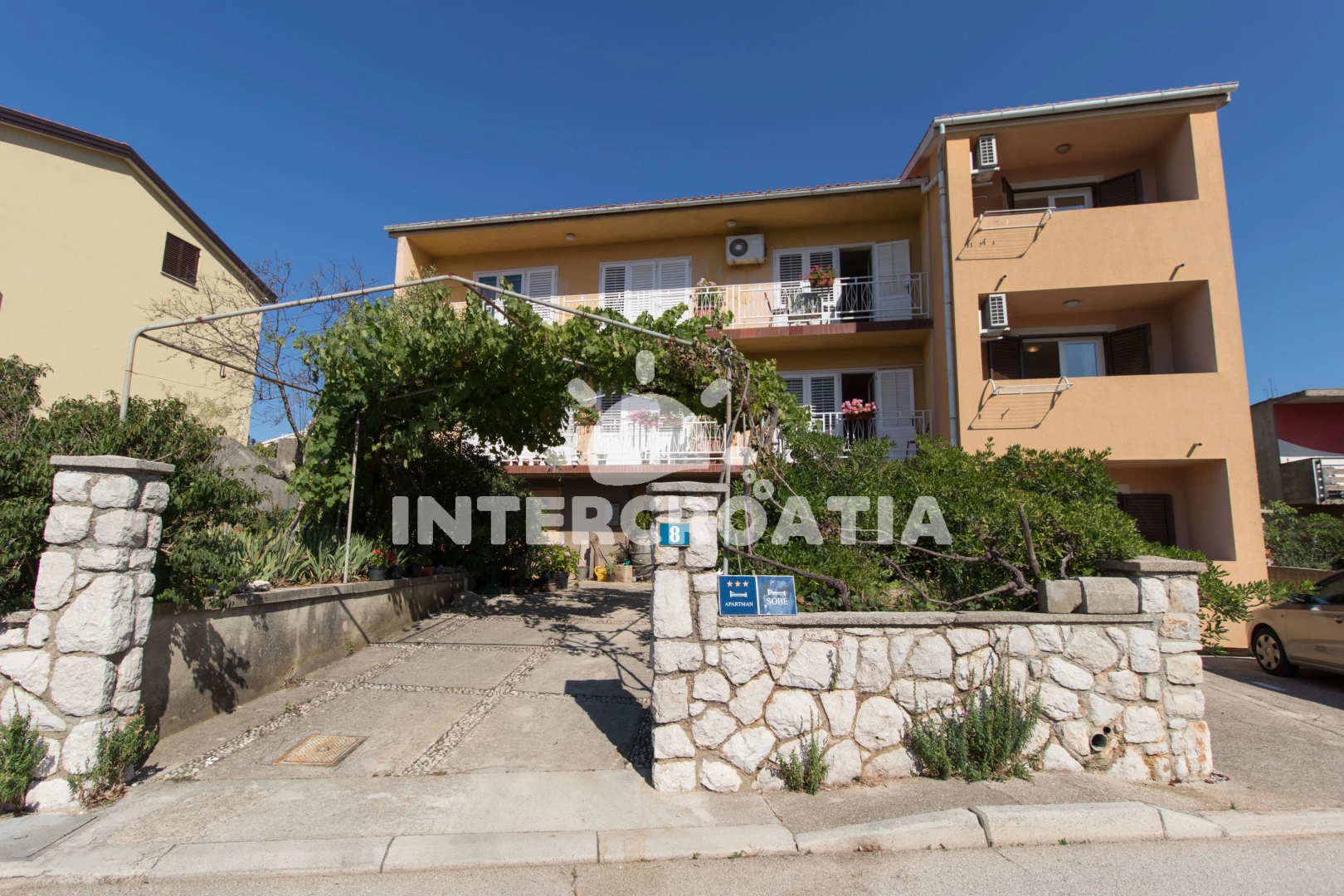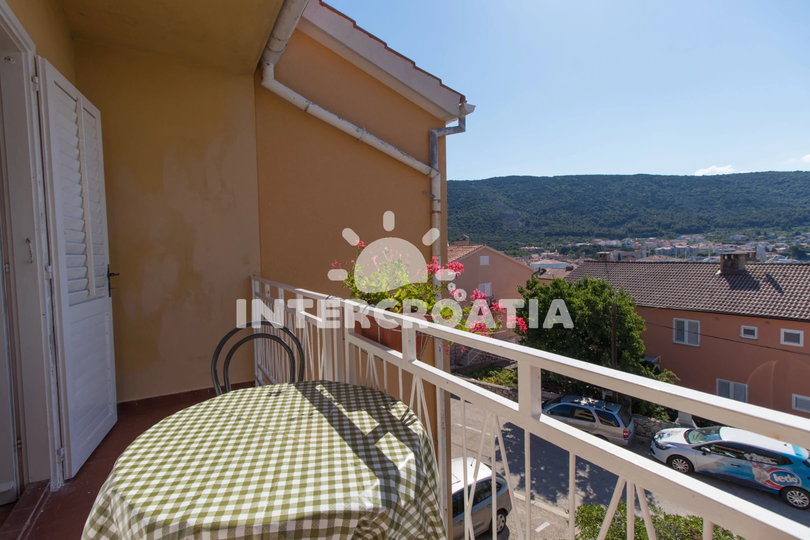 Vzdálenosti: Moře 400 m, pláž 400 m (oblázková a betonové desky), restaurace 50 m, supermarket 70 m, veřejná doprava 300 m, lékárna 300 m, ambulance 300 m, směnárna 300 m, čerpací stanice 300 m, centrum 400 m, půjčovna motorových člunů 600 m, půjčovna kol 600 m, diskotéka 600 m, muzeum 600 m, mini golf 600 m, bar 600 m, pošta 600 m, banka 600 m, tenisové kurty 600 m, potápění 1 km, marina 1,9 km, trajekt (Merag) 15 km, letiště (Rijeka) 50 km,