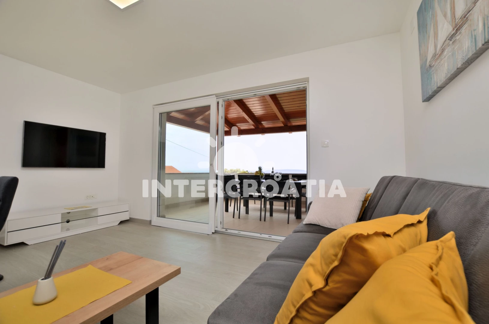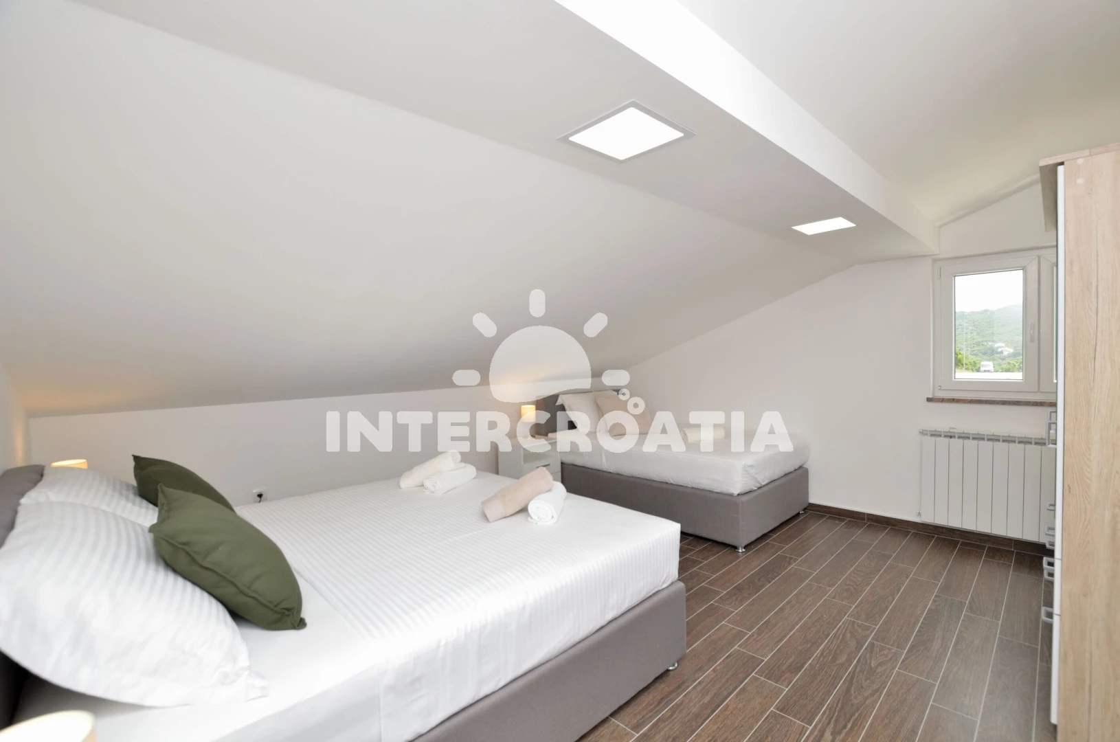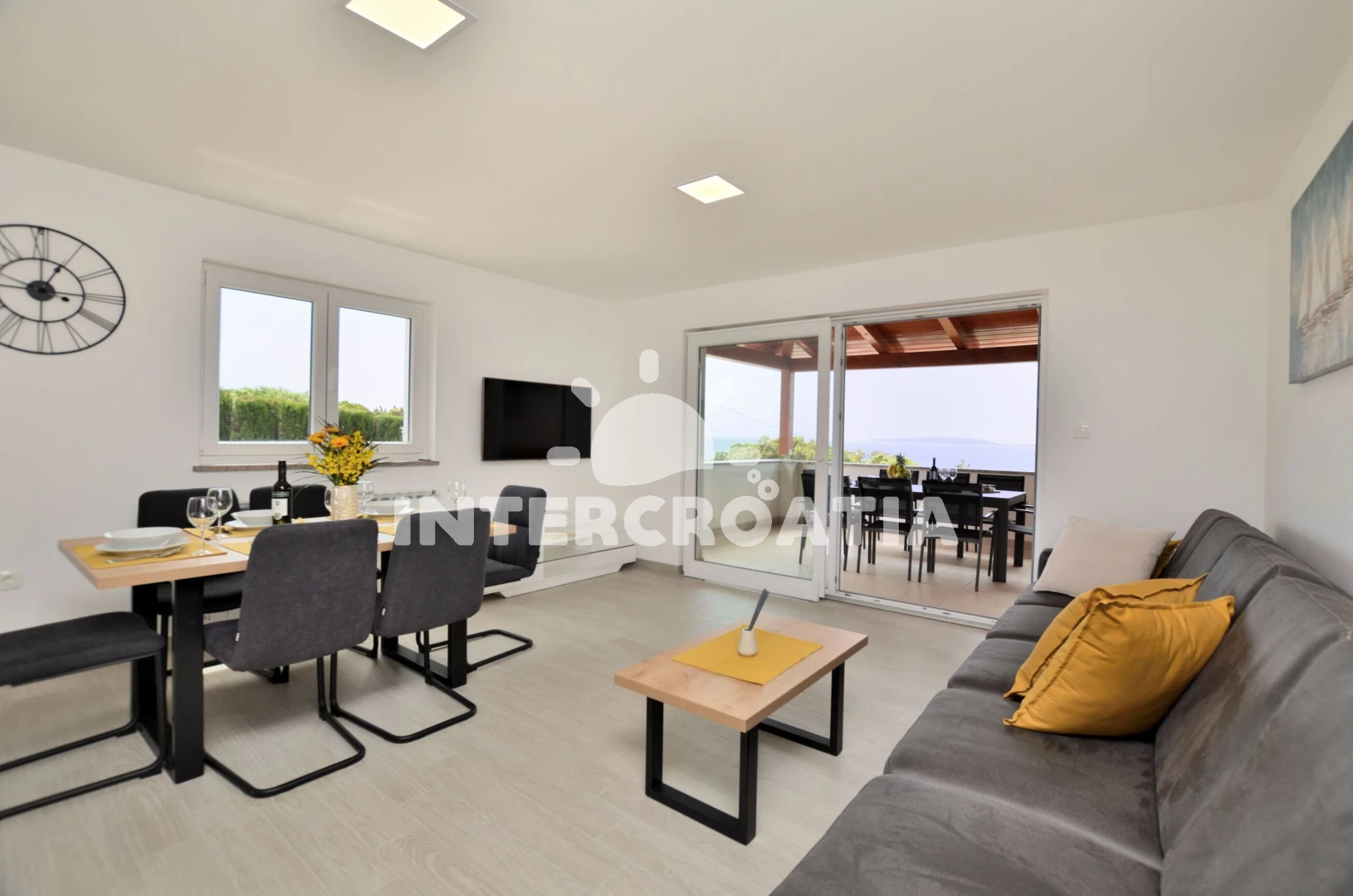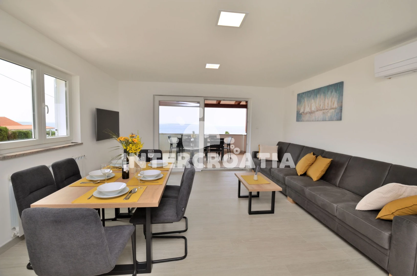 Apartmán (110 m2) s terasou, a výhledem na moře. Nachází se ve dvou patrech objektu. Apartmán má 3 ložnice a je vhodný pro až 8 osob. Kuchyňská linka je vybavena varnou deskou, troubou, toustovačem,…