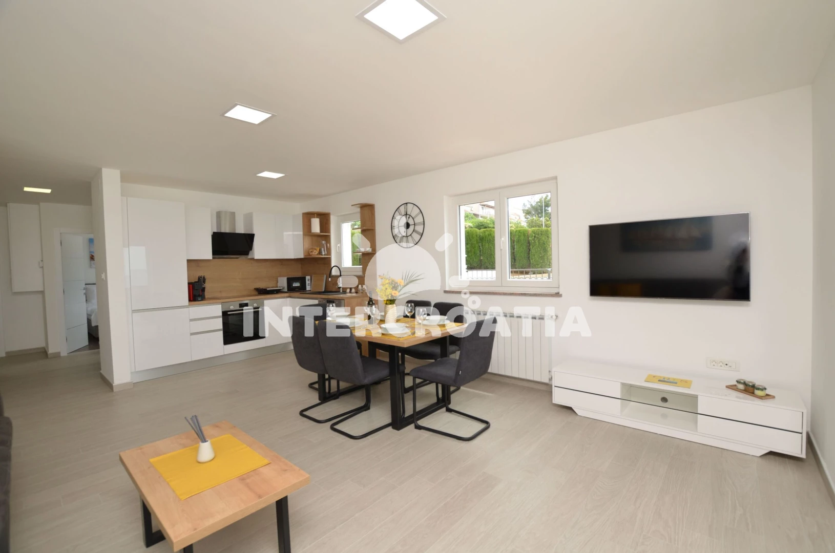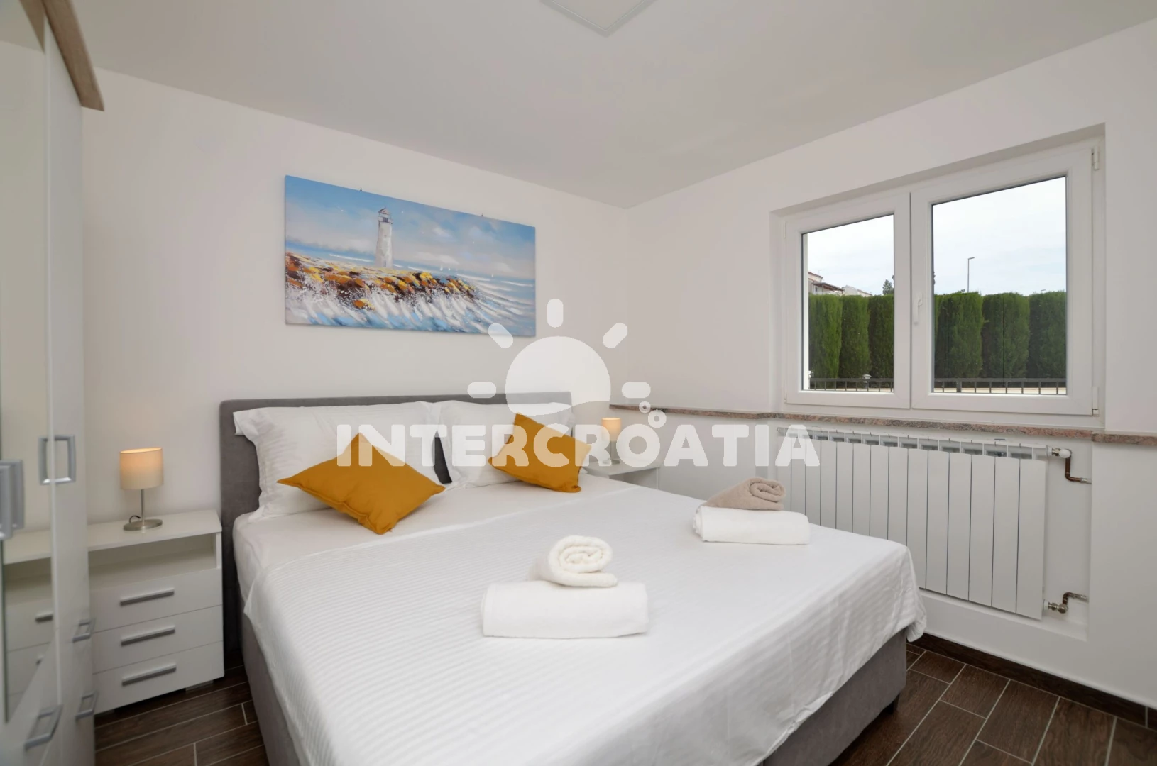 Vzdálenosti: Moře 50 m, pláž 100 m (skalnatá a oblázková), supermarket 50 m, bar 100 m, restaurace 100 m, ambulance 2 km, lékárna 2 km, směnárna 2 km, pošta 2 km, centrum 2 km, čerpací stanice 26 km, banka 26 km, trajekt (Merag) 39 km, letiště (Rijeka) 72 km, park Plitvice 117 km,