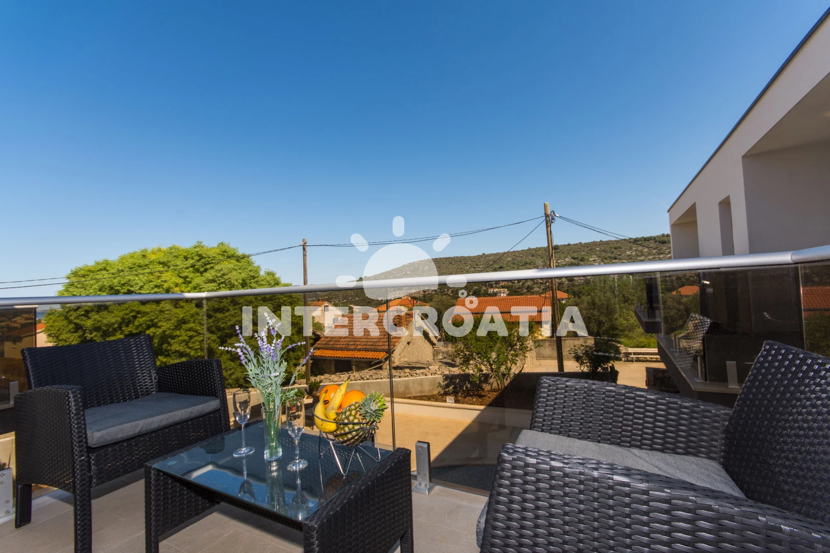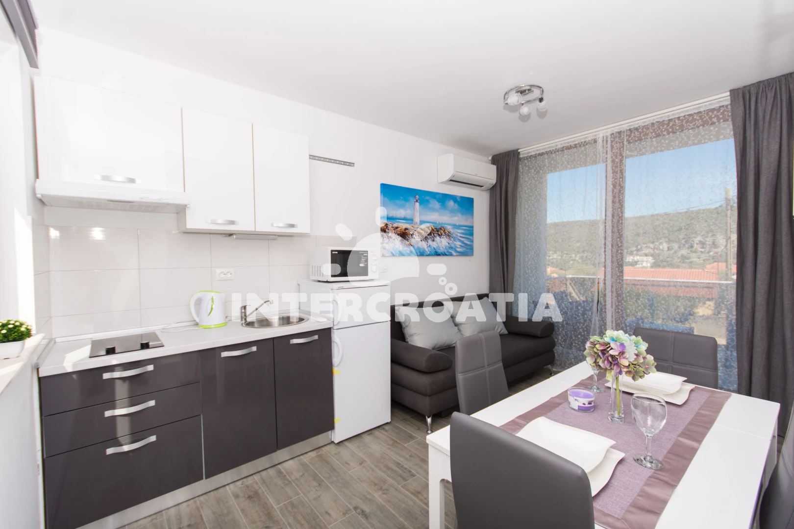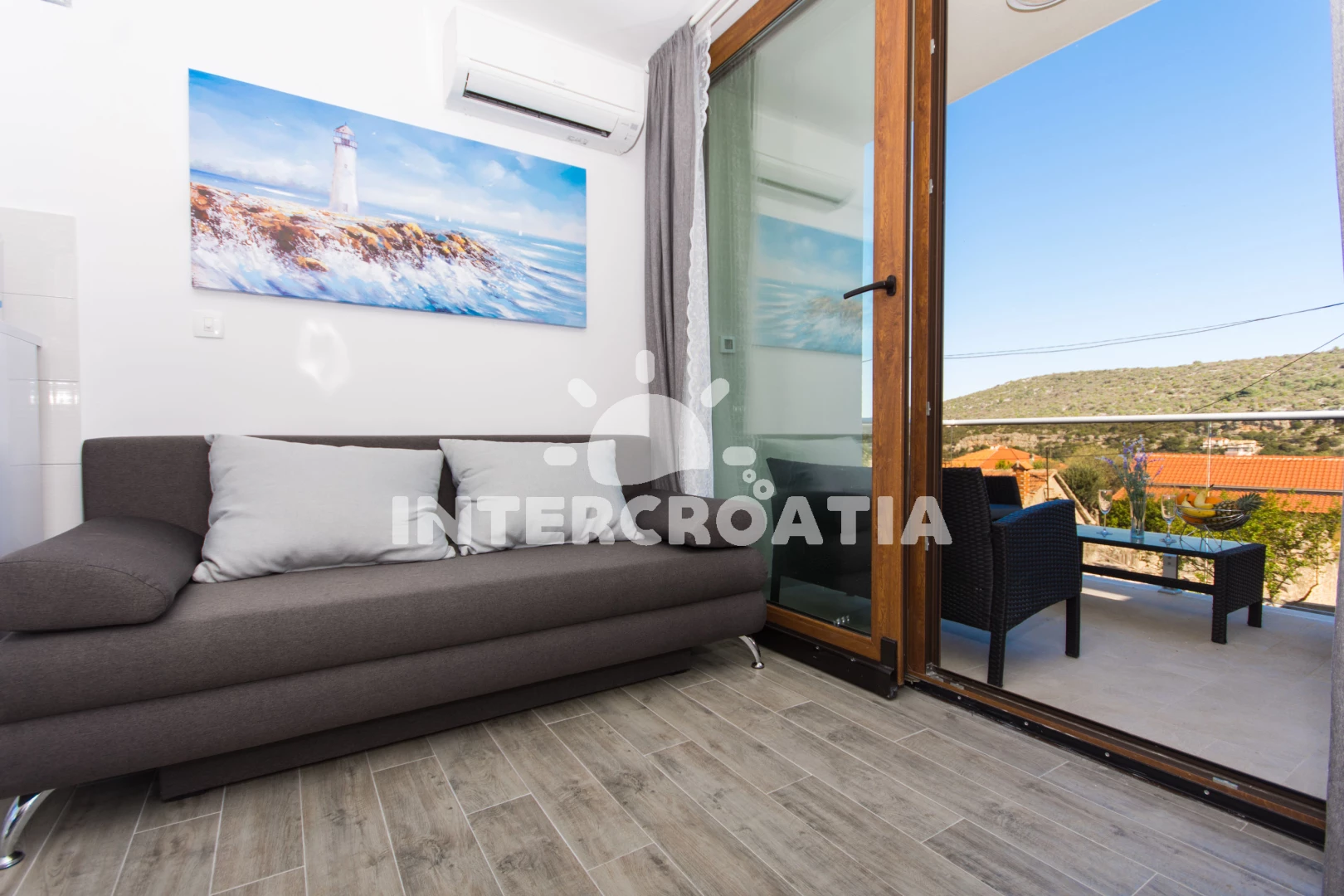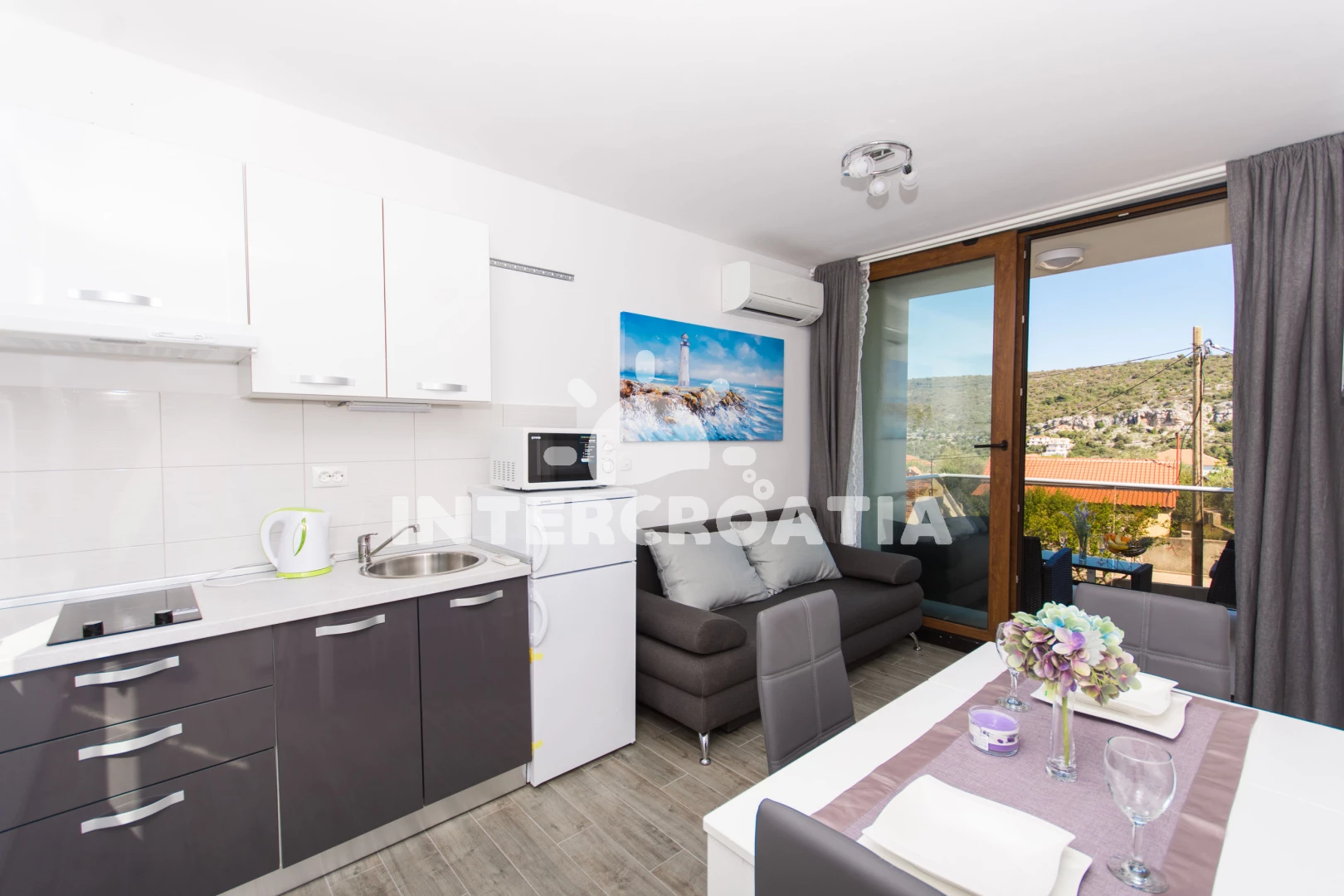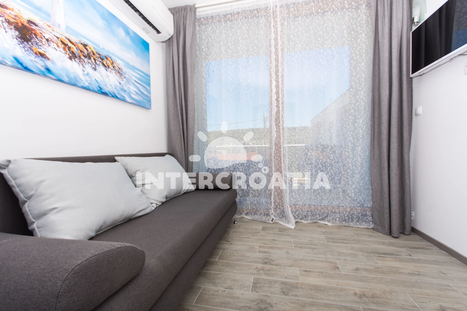 Apartmán (35 m2) s balkonem, a výhledem na moře. Nachází se v 1. patře objektu. Apartmán má 1 ložnici a je vhodný pro až 4 osoby. Kuchyňská linka je vybavena varnou deskou, kávovarem, toustovačem, mikrovlnnou troubou, rychlovarnou konvicí, nádobím, lednicí, mrazákem. V obývací místnosti je rozložitelná pohovka (extra lůžko pro 2 osoby). K dispozici televize se satelitním programem, žehlička. Ložnice s dvoulůžkem. Koupelna se sprchovým koutem, umyvadlem, fénem a WC.