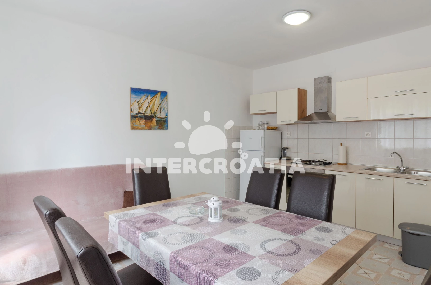 Apartmán se nachází 10 m od moře a pláže. Pláž je skalnatá a oblázková. U objektu je k dispozici společná zahrada s posezením a grilem. Parkování je 50m - 150 m od domu.