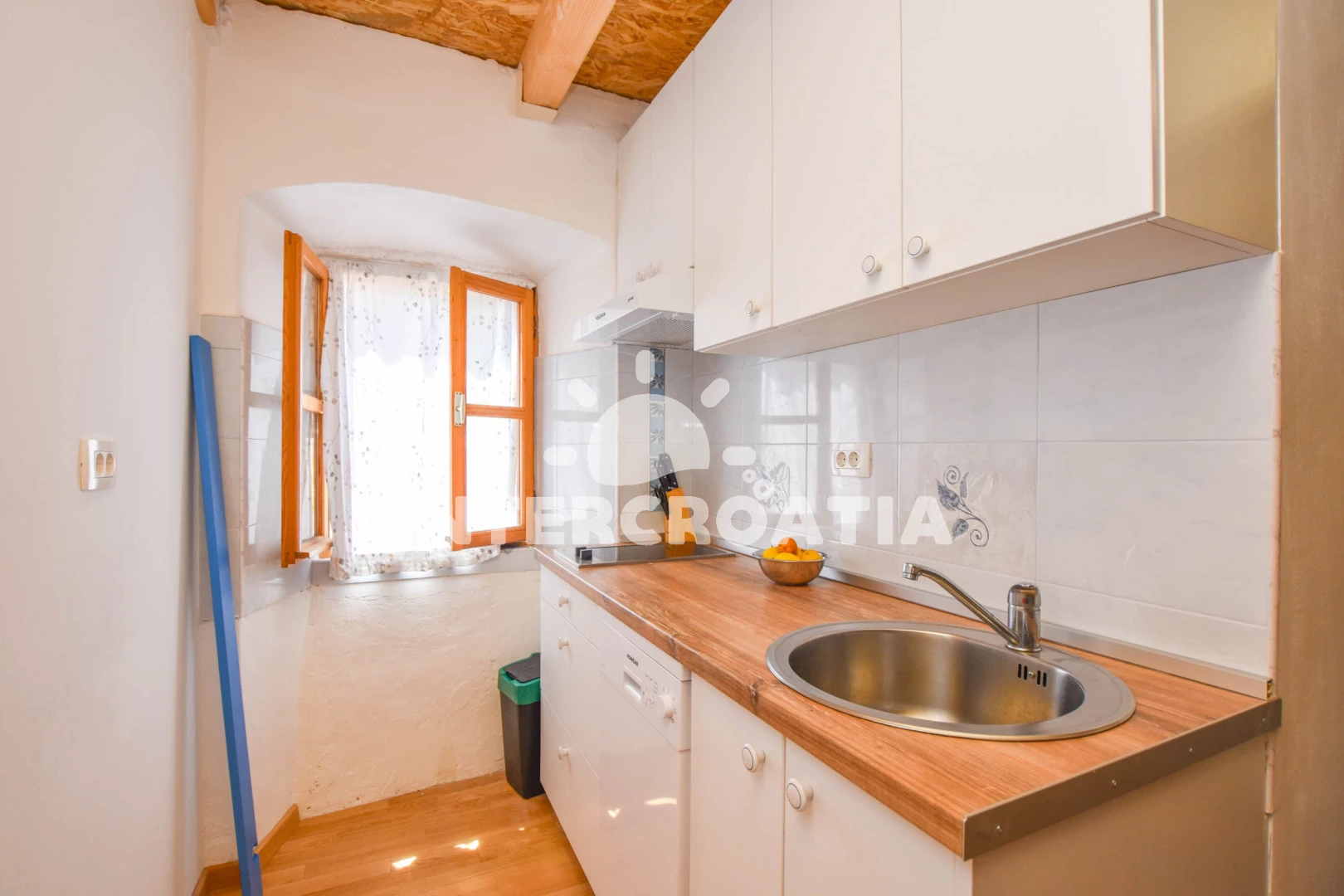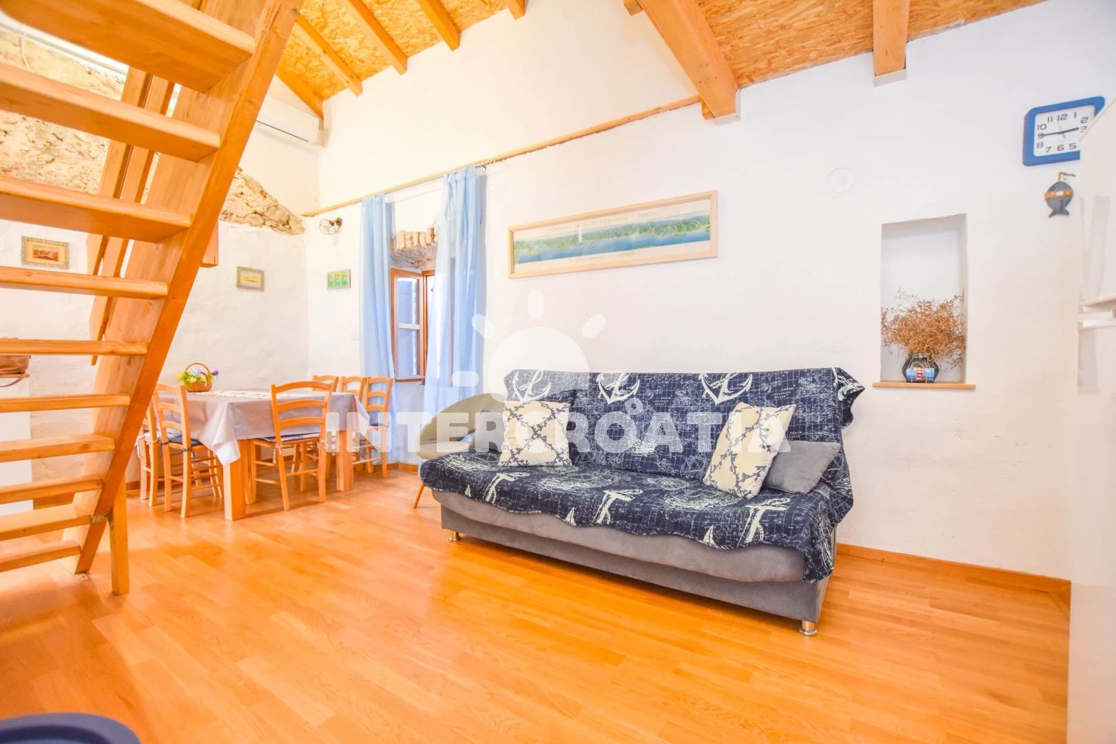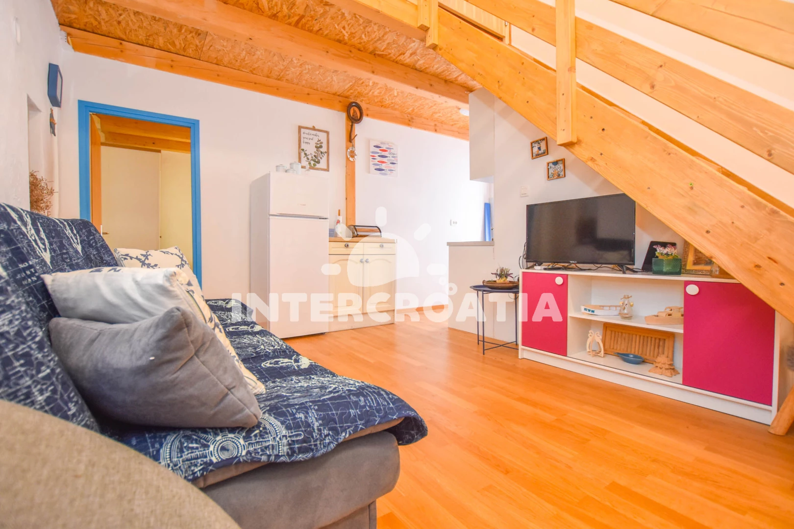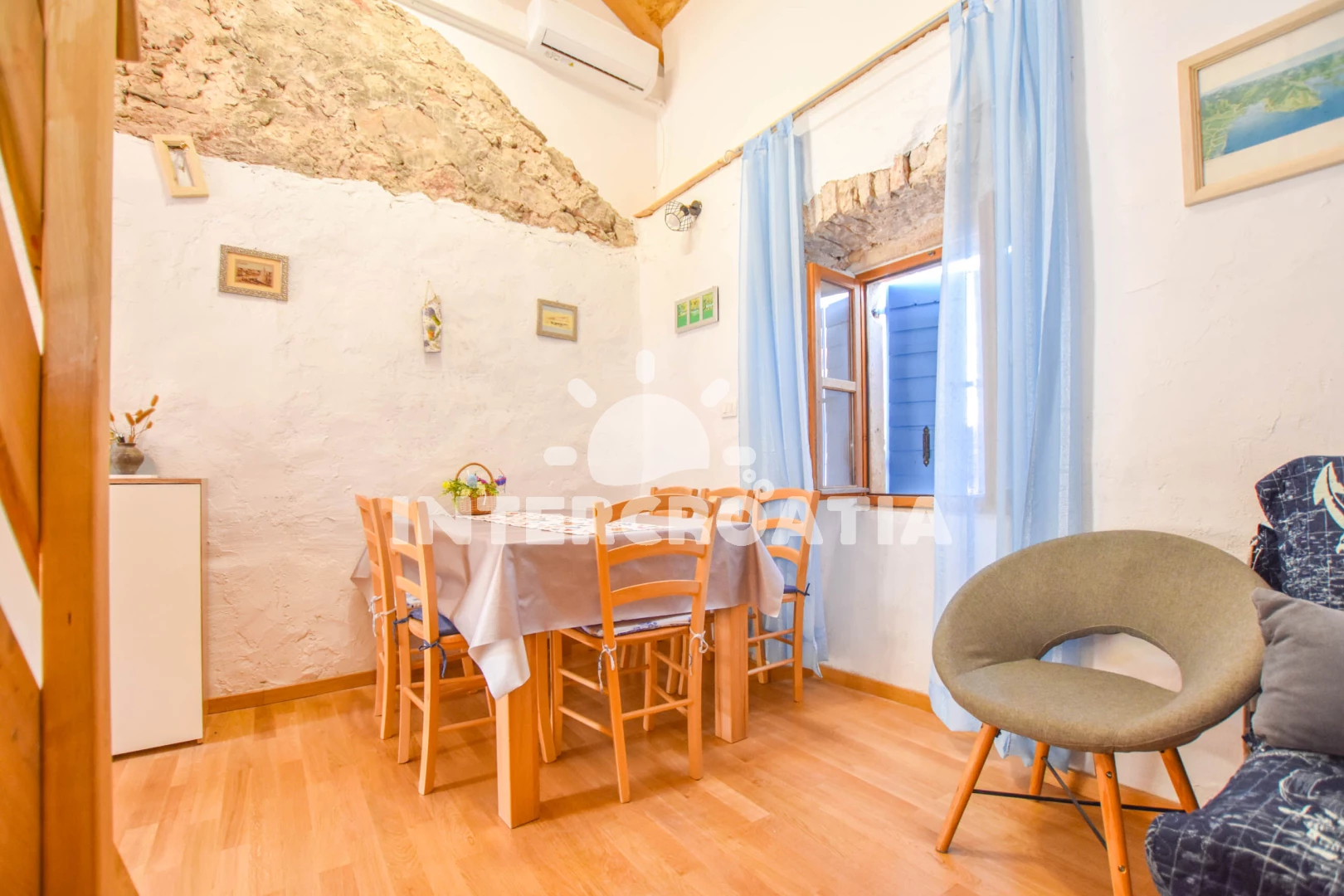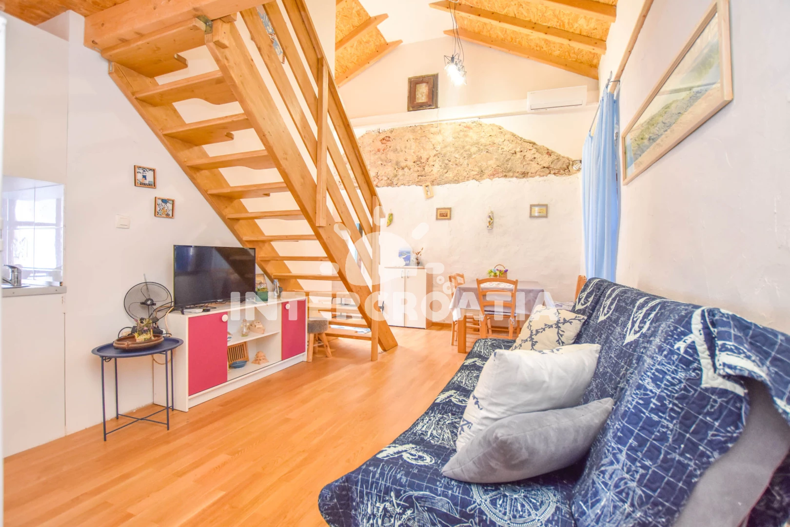 Apartmán se nachází 300 m od moře a pláže. Pláž je skalnatá, oblázková, větší kamení a betonové desky. U objektu je k dispozici společná zahrada s posezením a grilem. Parkování je před domem.