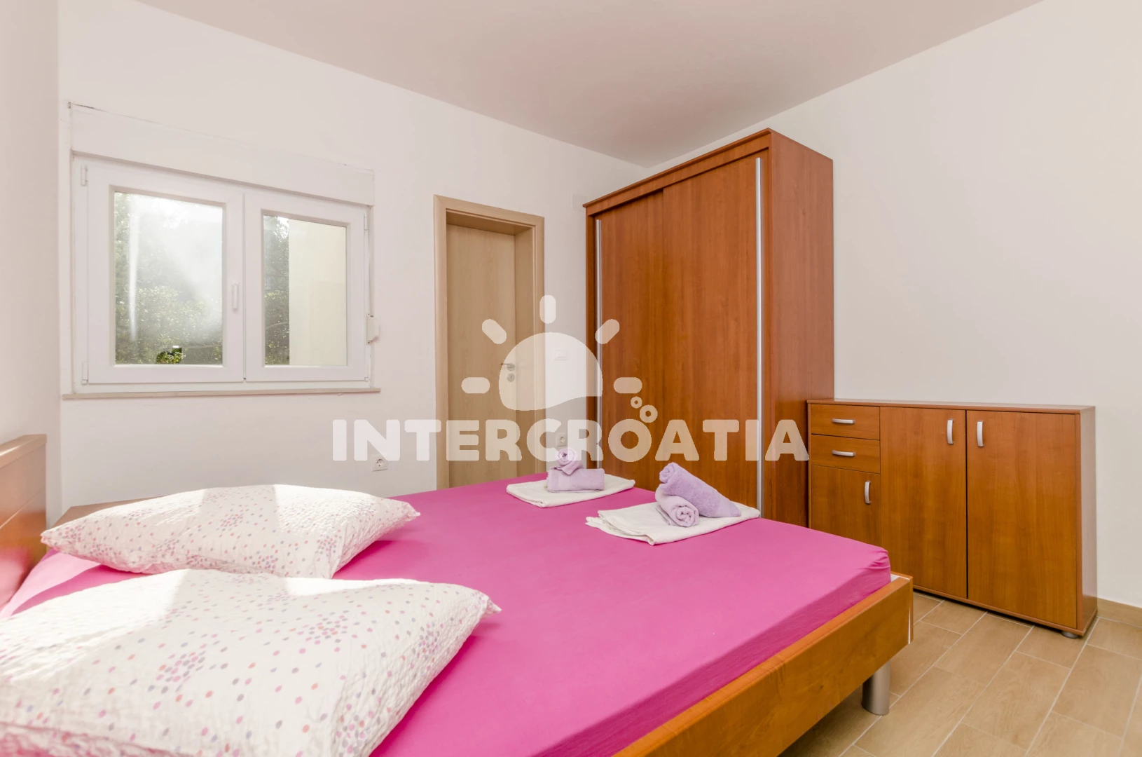 Apartmán se nachází 30 m od moře a pláže. Pláž je kamenné a betonové desky. U objektu je k dispozici společná zahrada s posezením a grilem. Parkování je před domem.