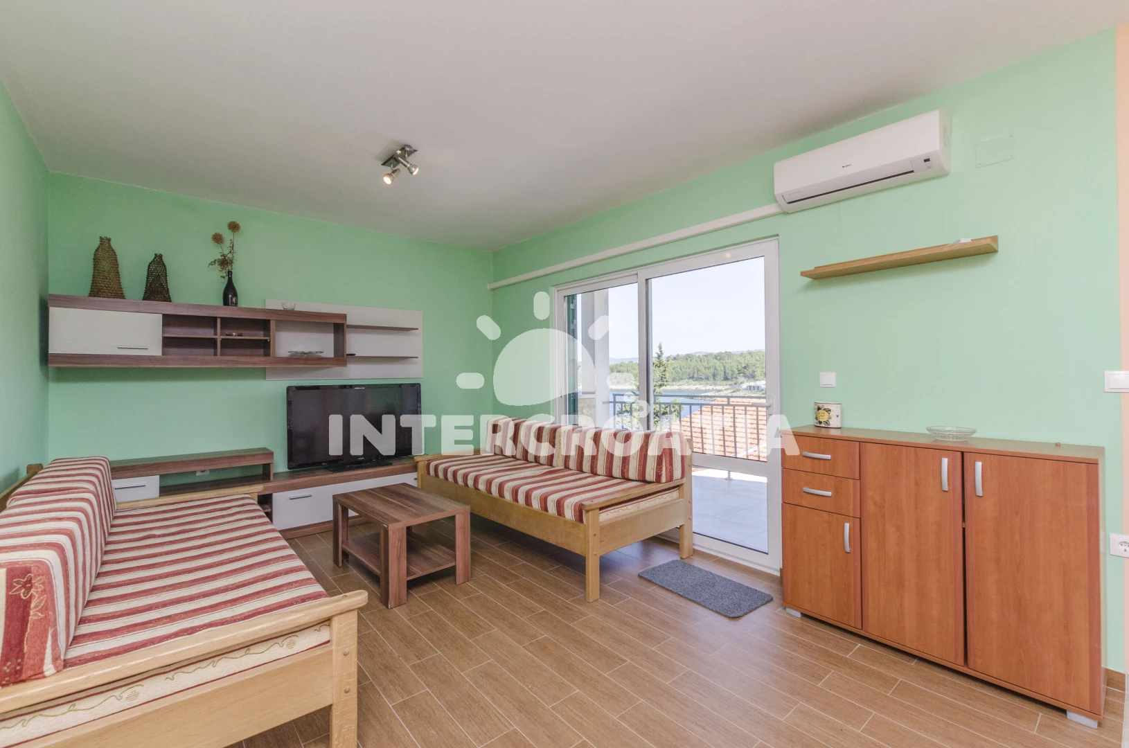 Apartmán (100 m2) s terasou, a výhledem na moře. Nachází se v 1. patře objektu. Apartmán má 2 ložnice a je vhodný pro až 6 osob. Kuchyňská linka je vybavena varnou deskou, troubou, rychlovarnou…