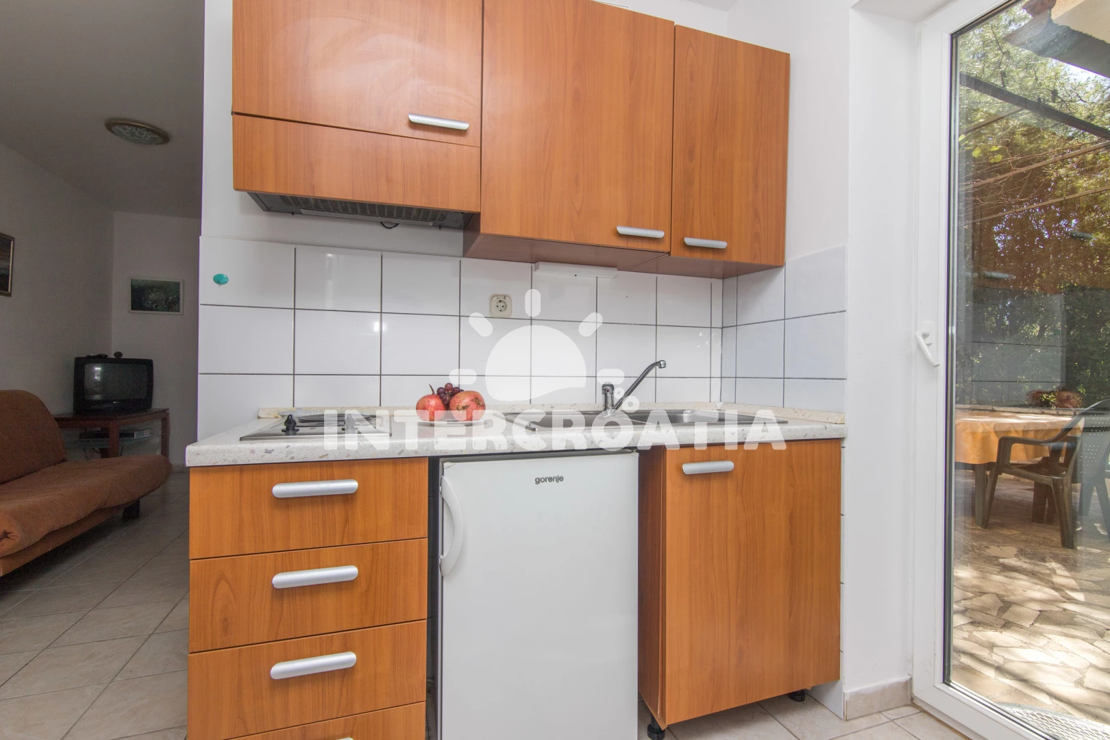 Apartmán (2) s terasou. Nachází se v objektu. Apartmán má 1 ložnici a je vhodný pro až 1 osobu. Kuchyňská linka je vybavena varnou deskou, rychlovarnou konvicí, nádobím, lednicí, mrazákem. V obývací místnosti je rozložitelná pohovka (extra lůžko pro osoby). K dispozici televize, žehlička. Hostům je k dispozici parkování u objektu zdarma.