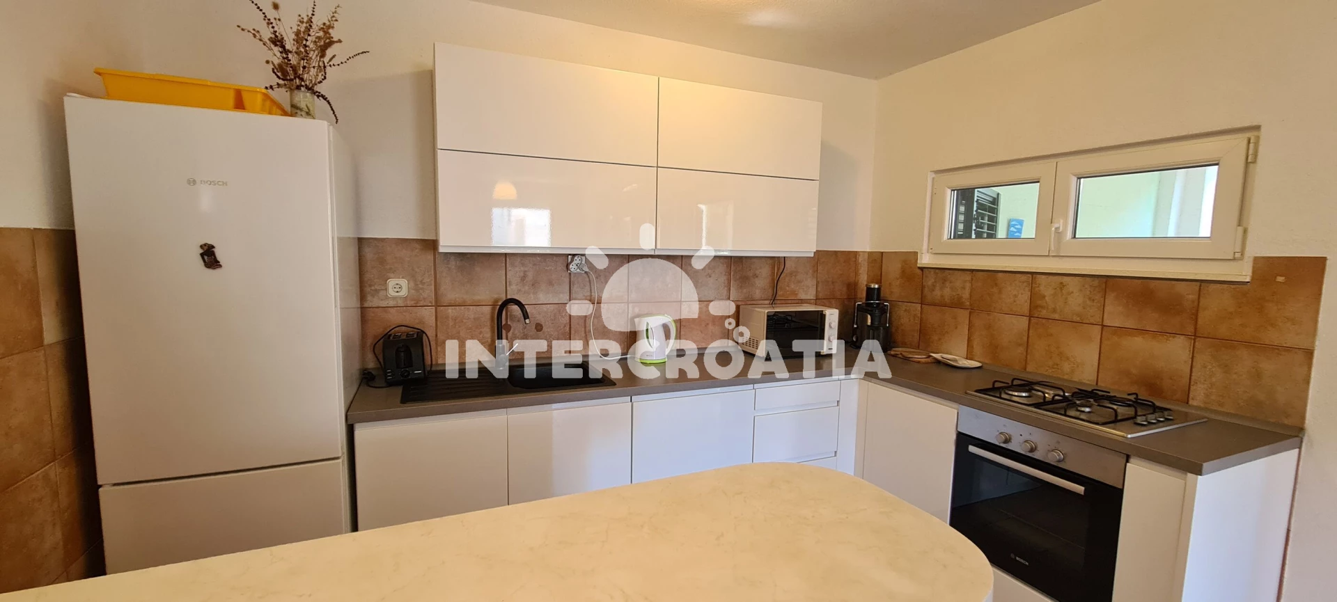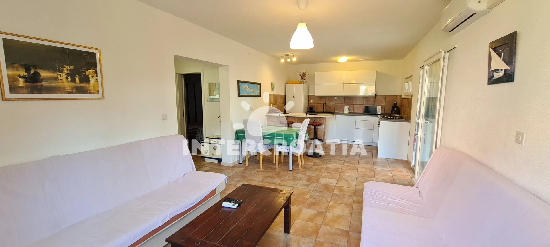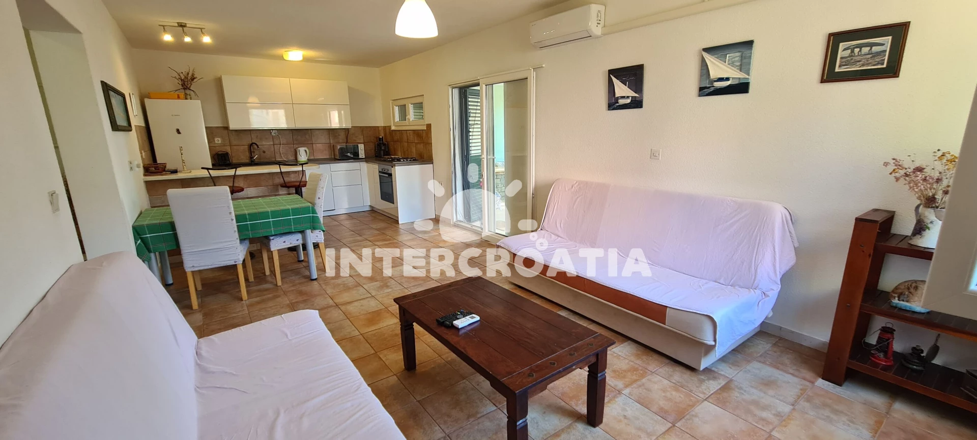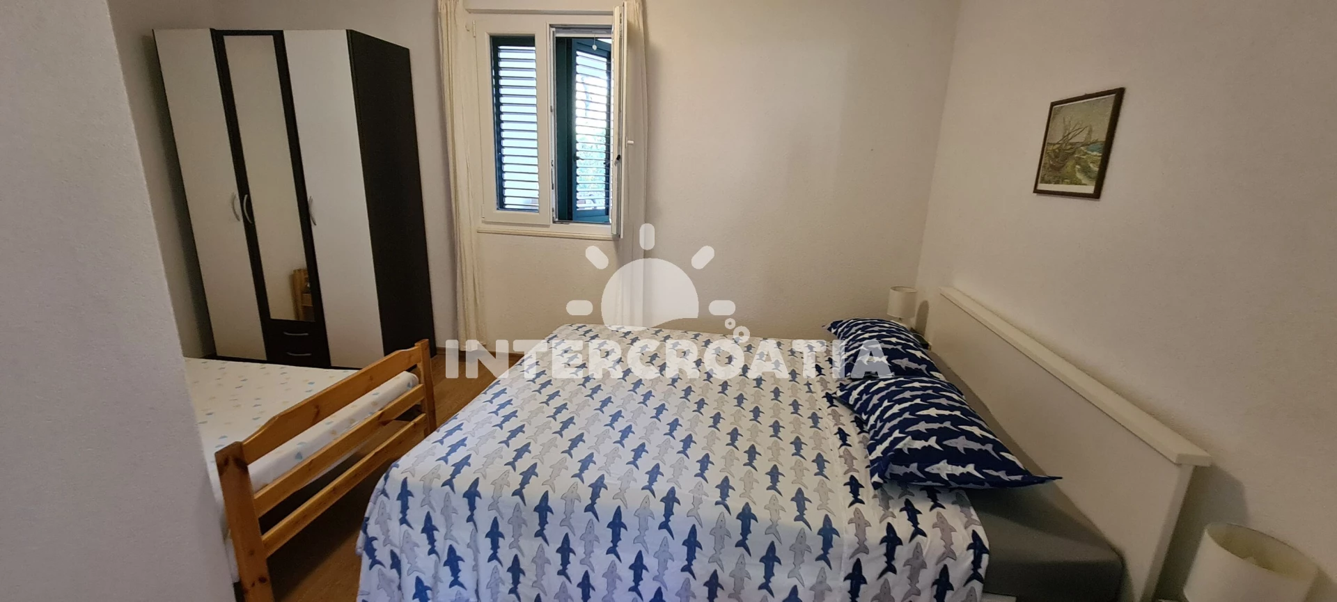 Apartmán se nachází 50 m od moře a pláže. Pláž je oblázková a betonové desky. U objektu je k dispozici společná zahrada s posezením a grilem. Parkování je před domem.