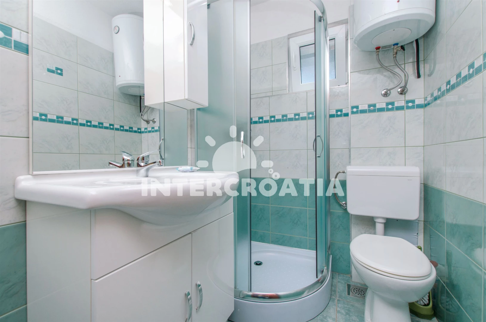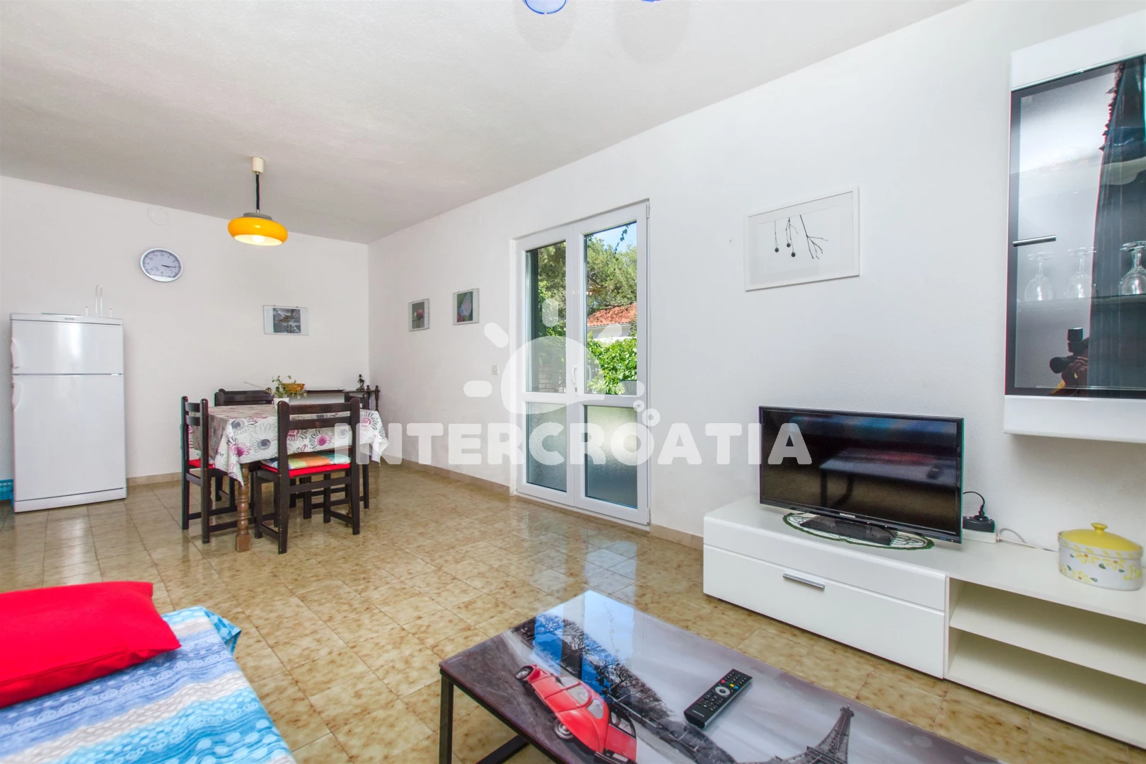 Apartmán se nachází 70 m od moře a pláže. Pláž je kamenné a betonové desky. Parkování je před domem.