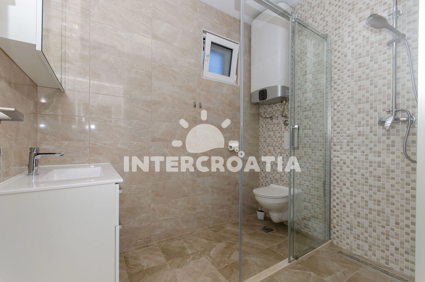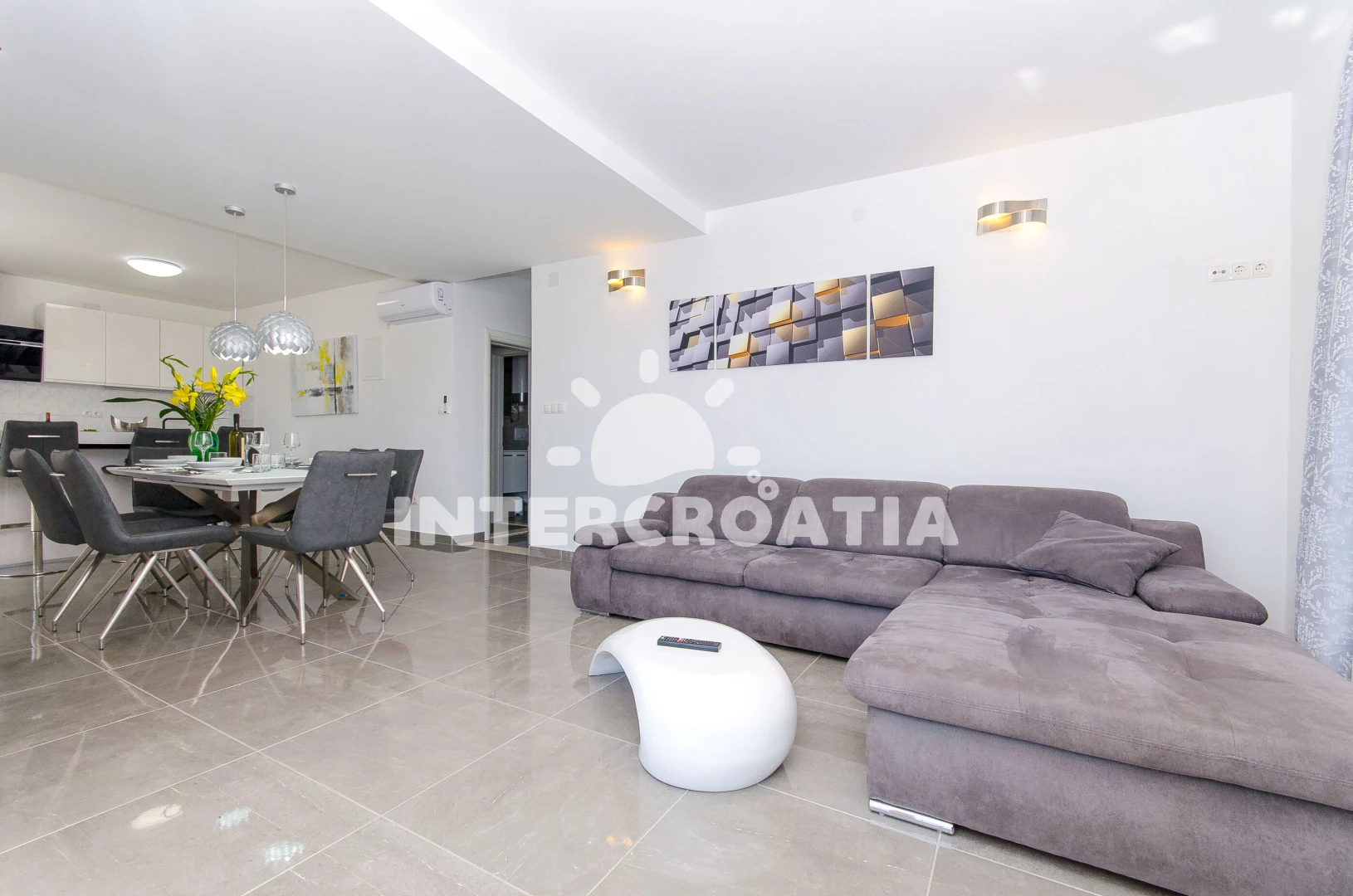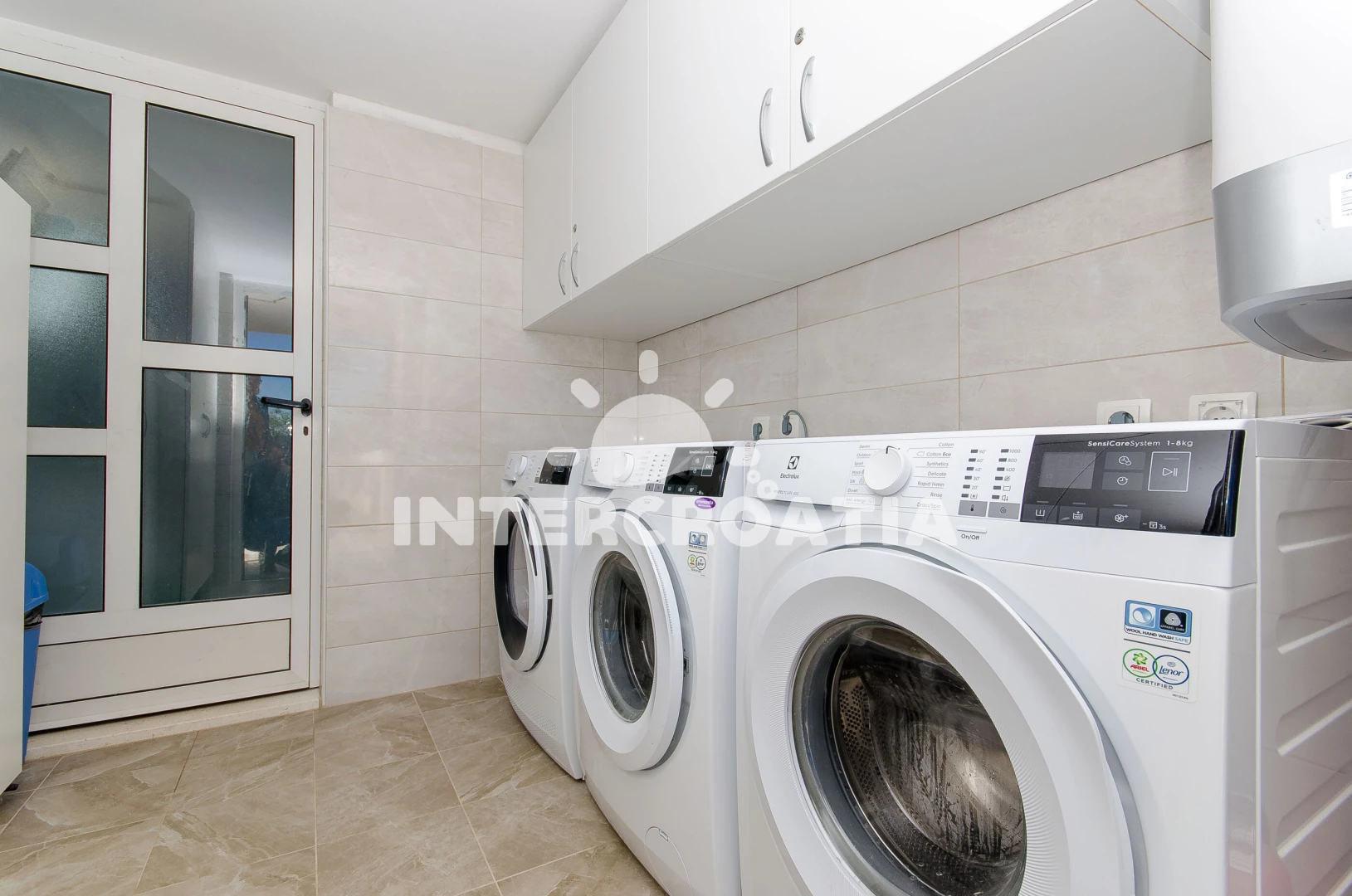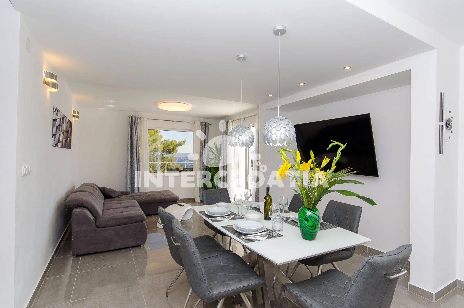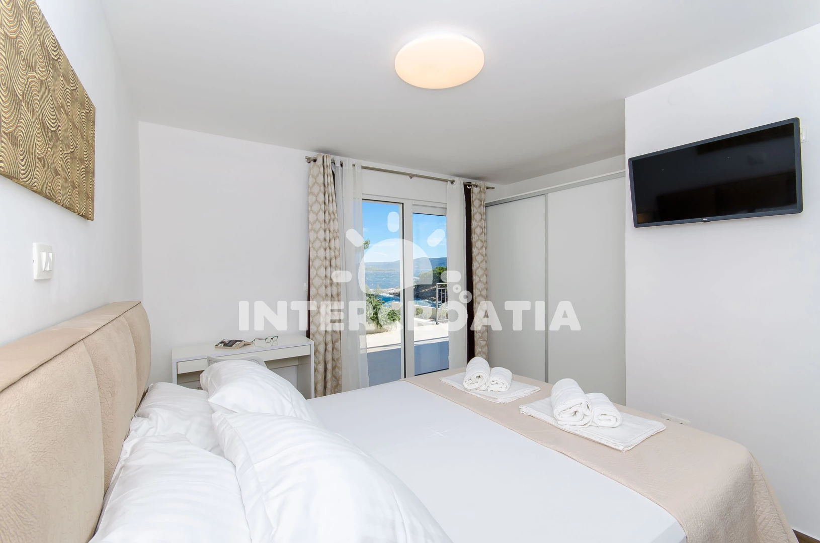 Apartmán se nachází 100 m od moře a pláže. Pláž je skalnatá a oblázková. Apartmán disponuje bazénem s lehátky pro ubytované hosty. U objektu je k dispozici společná zahrada s posezením a grilem. Parkování je před domem.