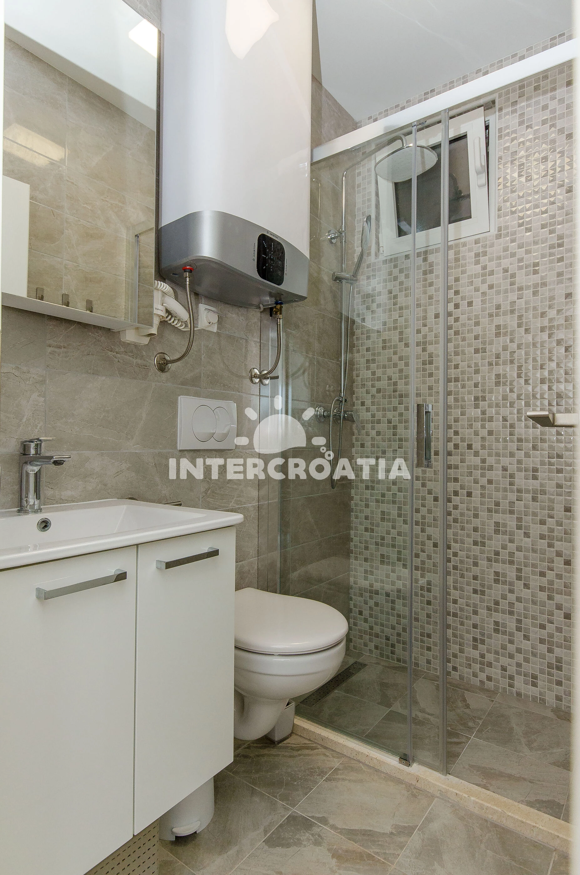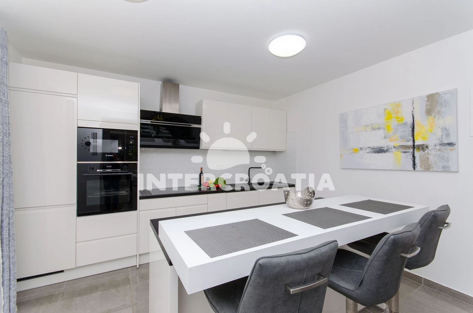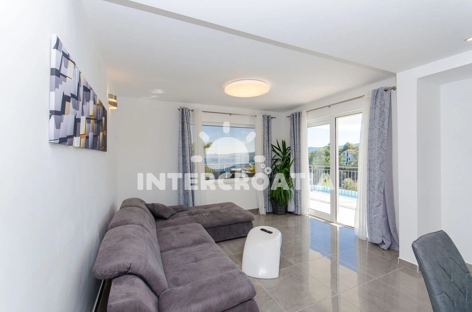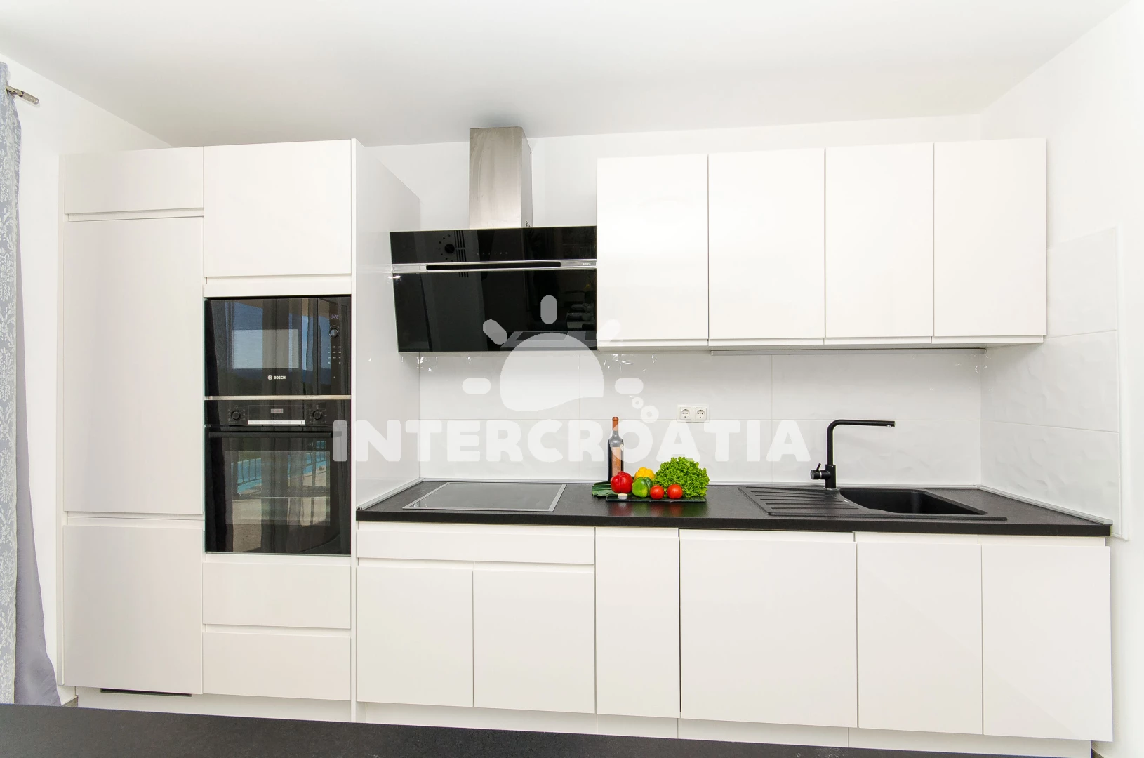 Apartmán se nachází 100 m od moře a pláže. Pláž je skalnatá a oblázková. Apartmán disponuje bazénem s lehátky pro ubytované hosty. U objektu je k dispozici společná zahrada s posezením a grilem. Parkování je před domem.