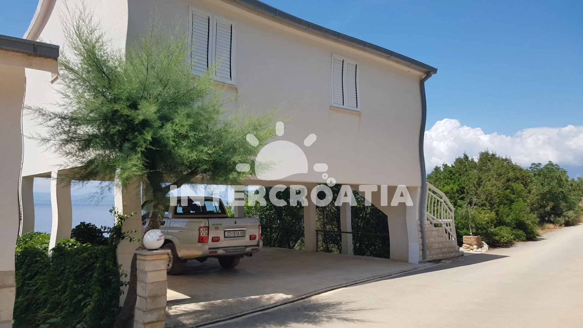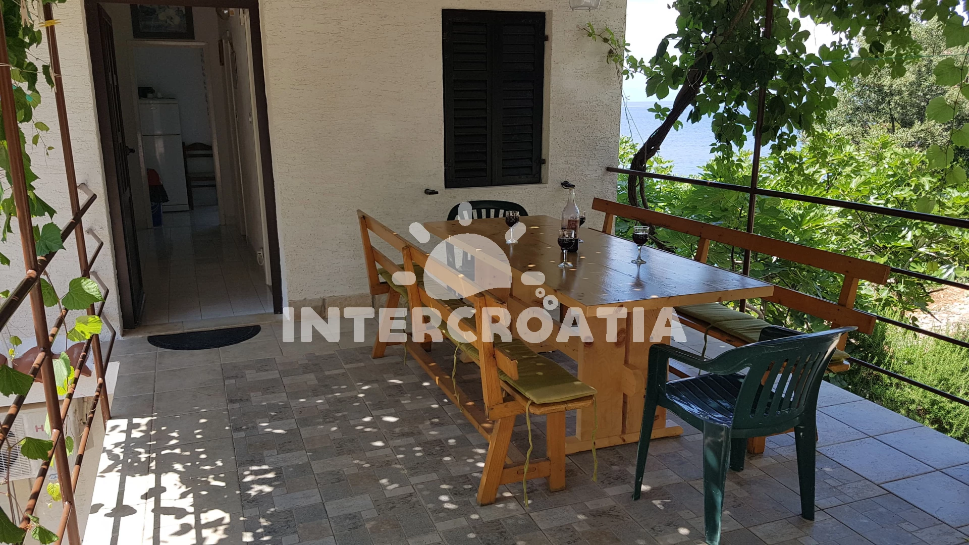 Apartmán se nachází 10 m od moře a pláže. Pláž je oblázková a betonové desky. U objektu je k dispozici společná zahrada s posezením a grilem. Parkování je před domem.