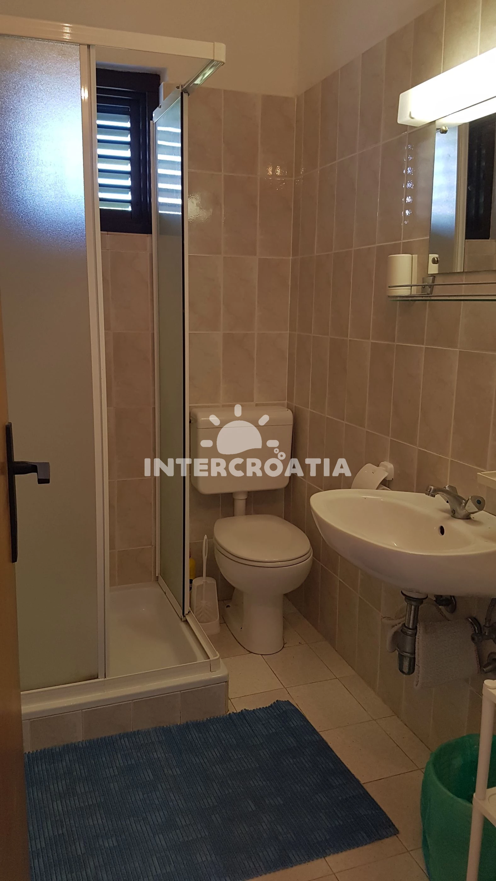 Apartmán (60 m2) s balkonem, s terasou, a výhledem na moře. Nachází se v 1. patře objektu. Apartmán má 3 ložnice a je vhodný pro až 5 osob. Kuchyňská linka je vybavena varnou deskou, troubou, nádobím, lednicí, mrazákem. První ložnice s přistýlkou. Druhá ložnice s dvoulůžkem. Třetí ložnice s dvoulůžkem. Koupelna se sprchovým koutem, umyvadlem, WC.