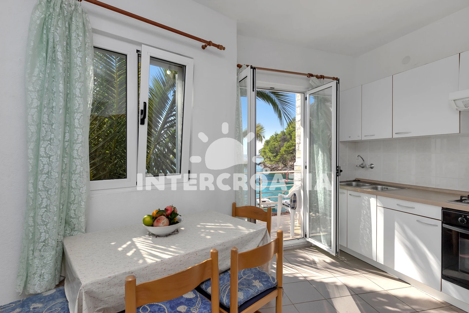 Apartmán se nachází 10 m od moře a pláže. Pláž je oblázková. U objektu je k dispozici společná zahrada s posezením a grilem. Parkování je 50m - 150 m od domu.